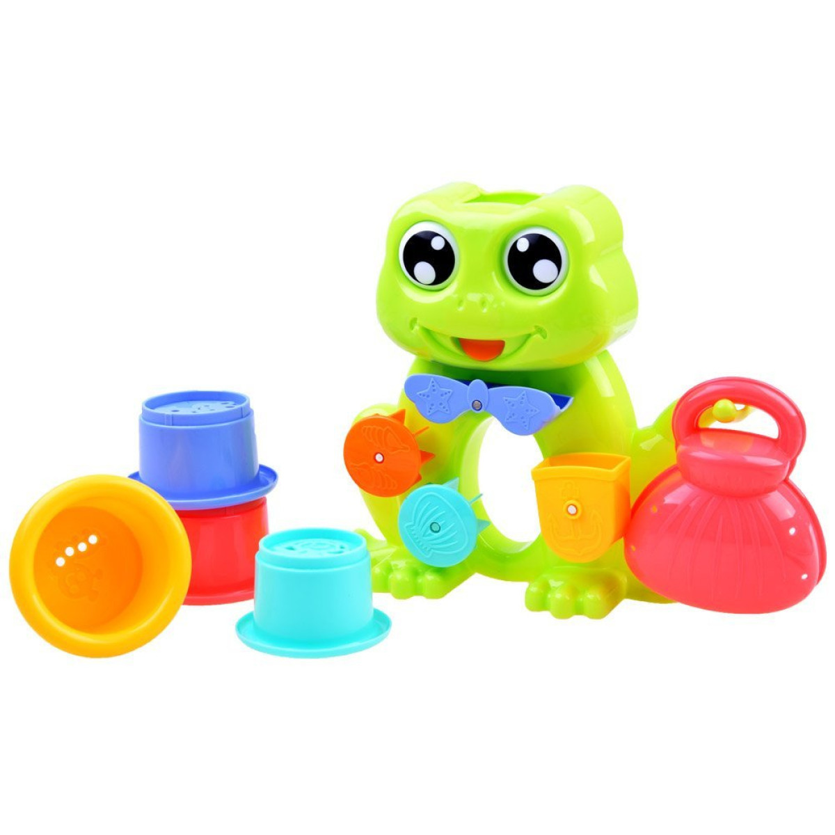 Valades vett konna peale, algab lõbus kaskaad ratastel, mis on konna küljes. Vesi voolab ülevalt alla, pöörates rattaid ümber oma telje. Lapsed saavad kasutada värvilisi tasse vee valamiseks, püramiidi ehitamiseks või nende vees ujutamiseks. Mänguasi on täielikult valmistatud plastikust, väga atraktiivsetes värvides, mis rikastavad igapäevast õhtust vanniskäiku igale lapsele.