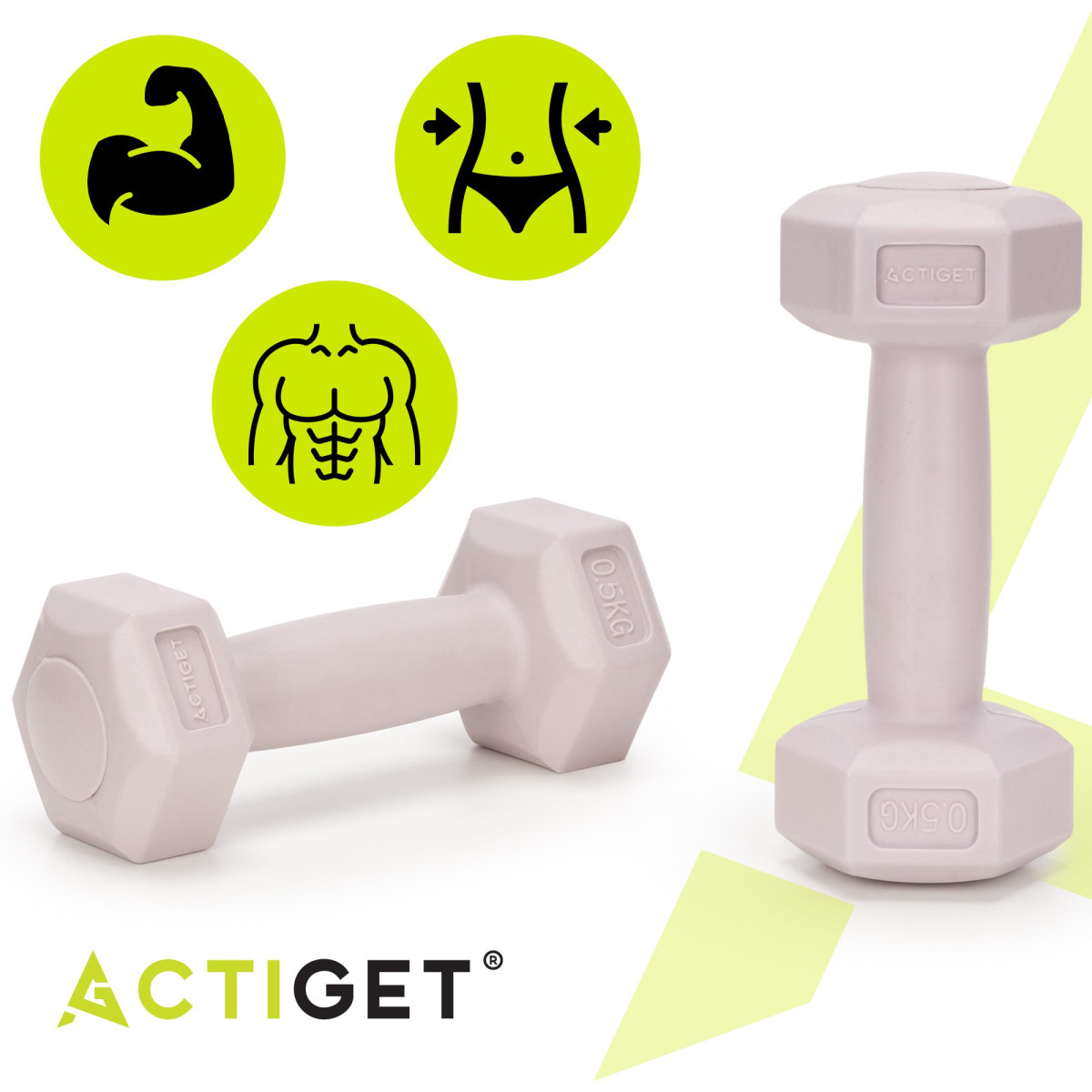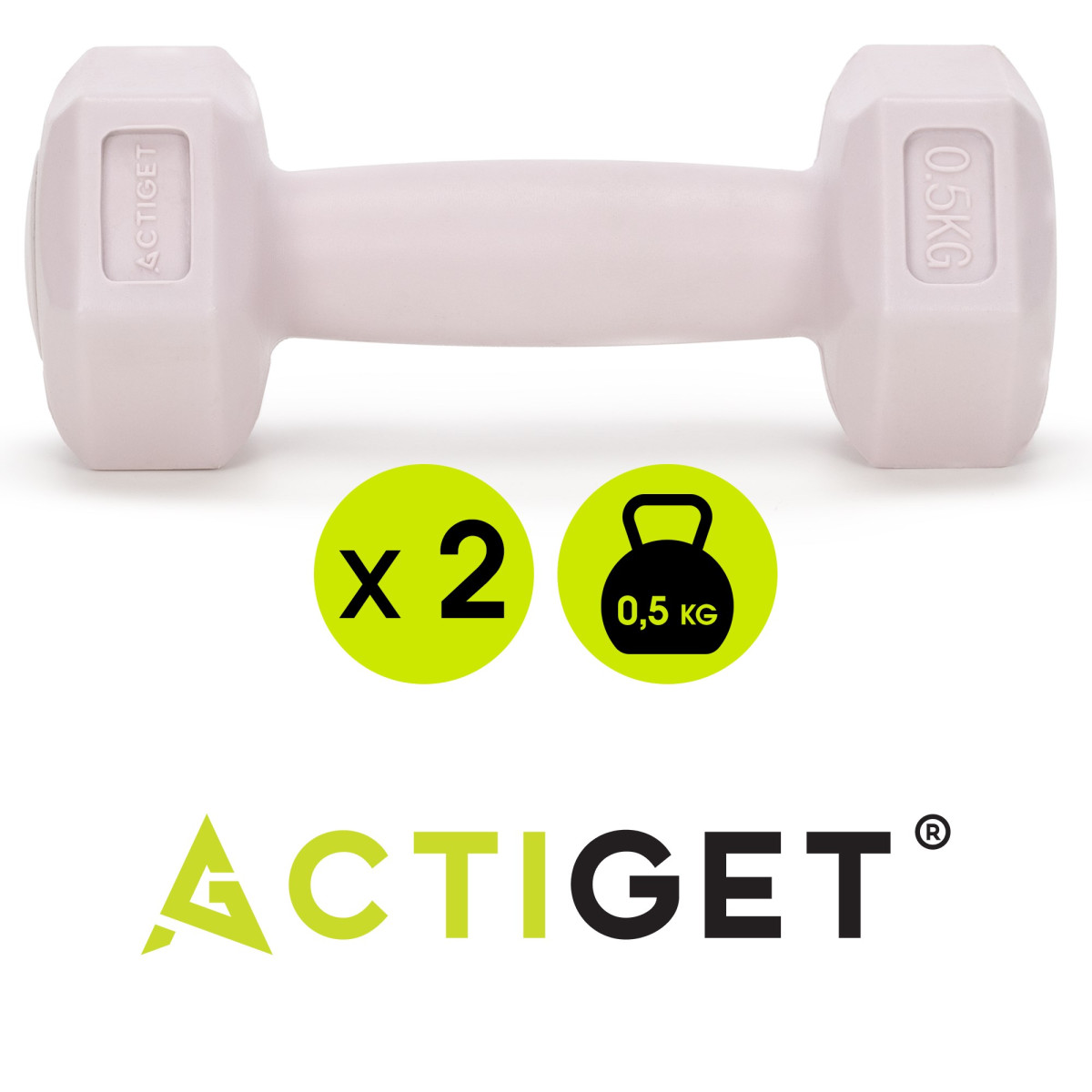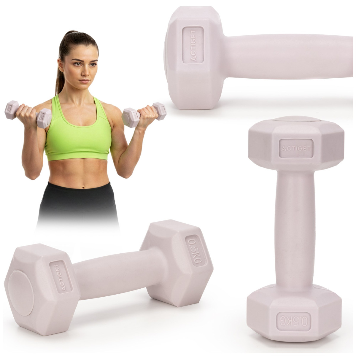 2 x 0,5 kg kuusnurksed hantlid treeningharjutusteks, 2 tk komplekt, heleroosa