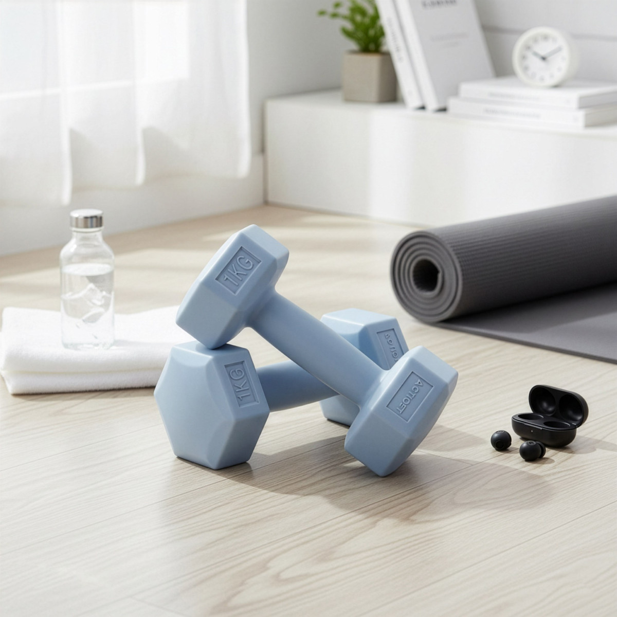 2 x 1 kg kuusnurksed hantlid treeningharjutusteks