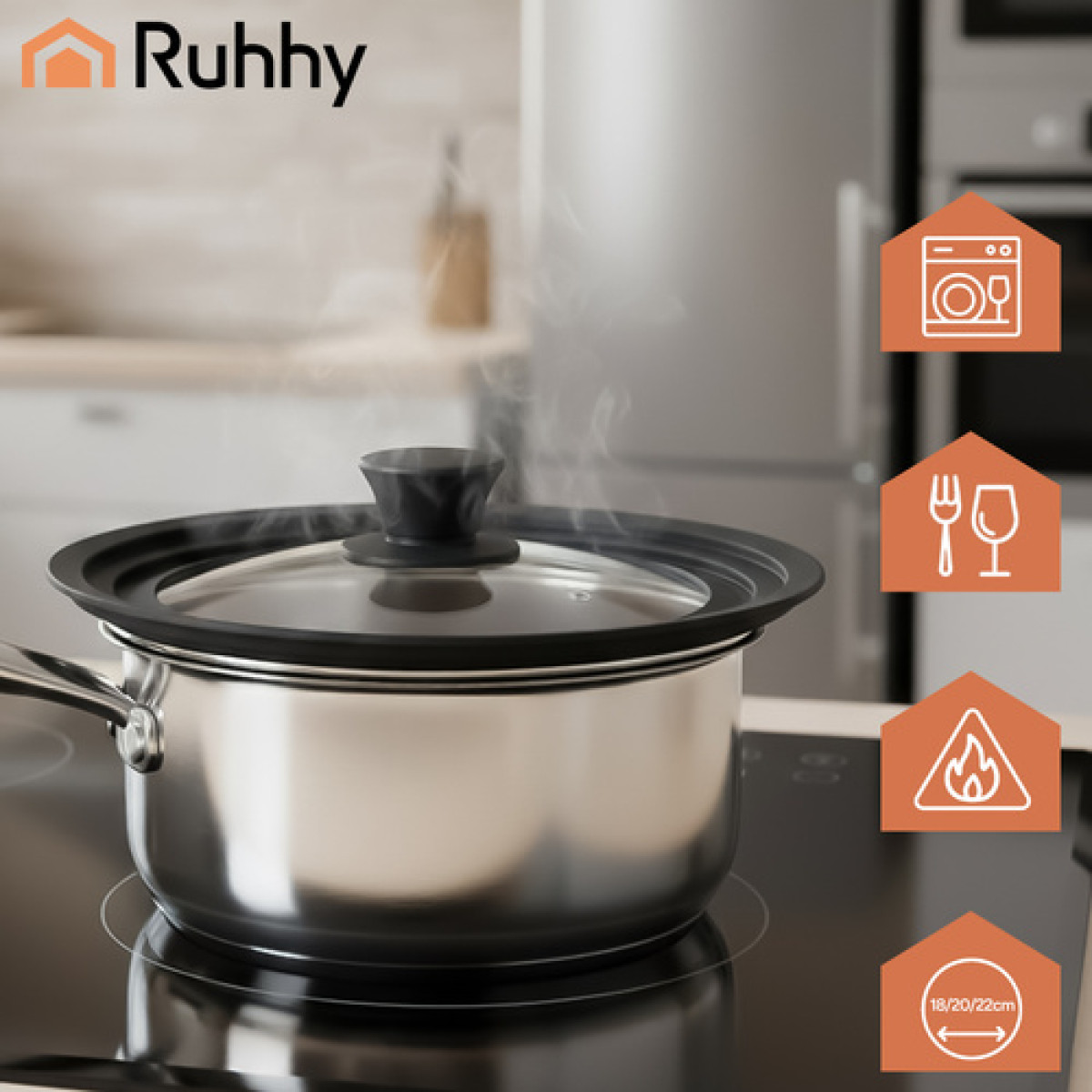 Universaalne Kaas 3in1 Ruhhy Silikoonist ja Klaasist Potidele ja Pannidele 18/20/22 cm