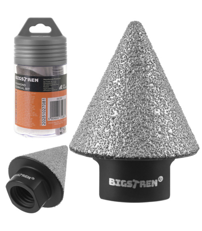 Bigstren diameeterkoonus frees on tööriist mõeldud tööks, kus tavalised puurid ei saa hakkama. See võimaldab täpset avade tegemist keraamikas, looduskivis, graniidis, marmorist ja betoonis. Tänu vaakumjoodetud teemantidele saavutate puhtad servad ilma kahjustusteta. Freesi on disainitud pikaealisuse, stabiilse töö ja korduvate tulemuste saavutamiseks. Sobib nii professionaalseks kui koduseks kasutamiseks.