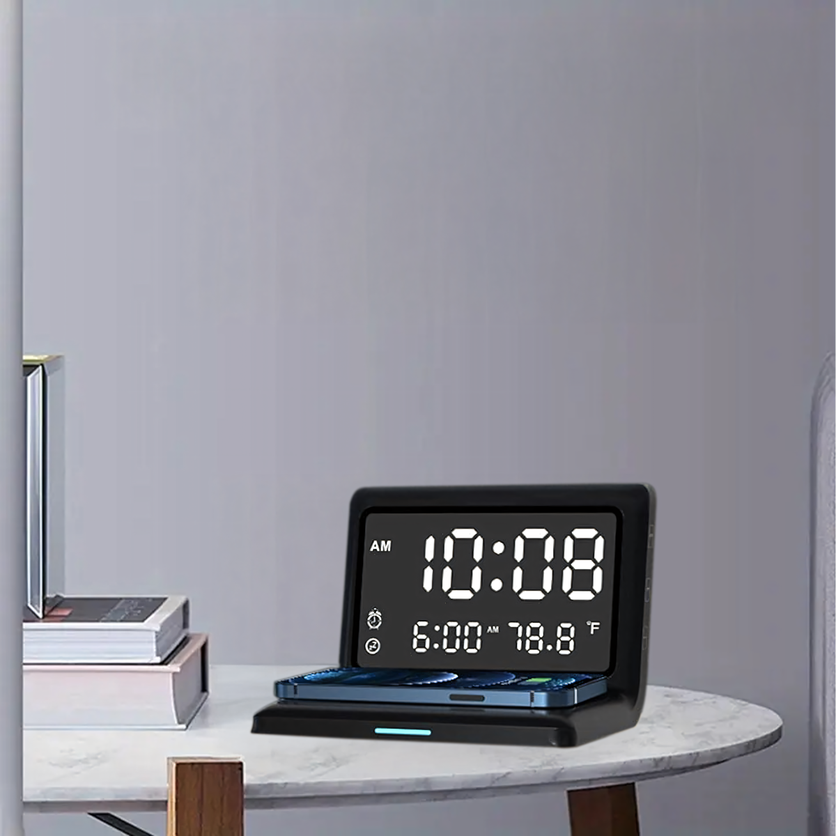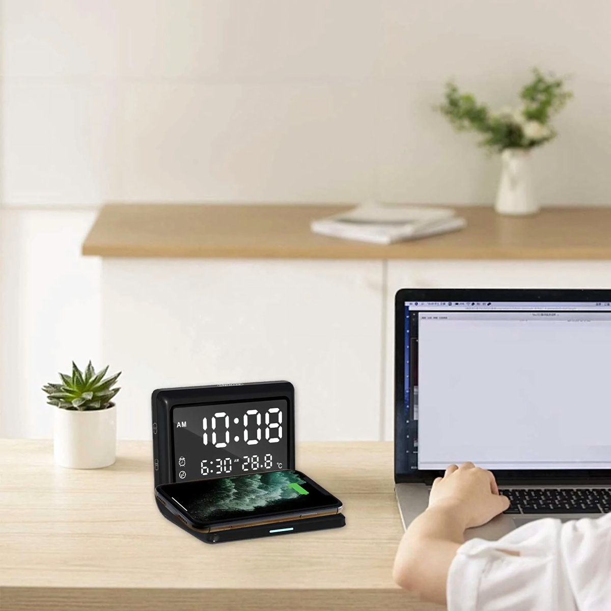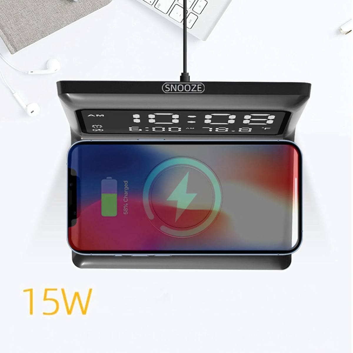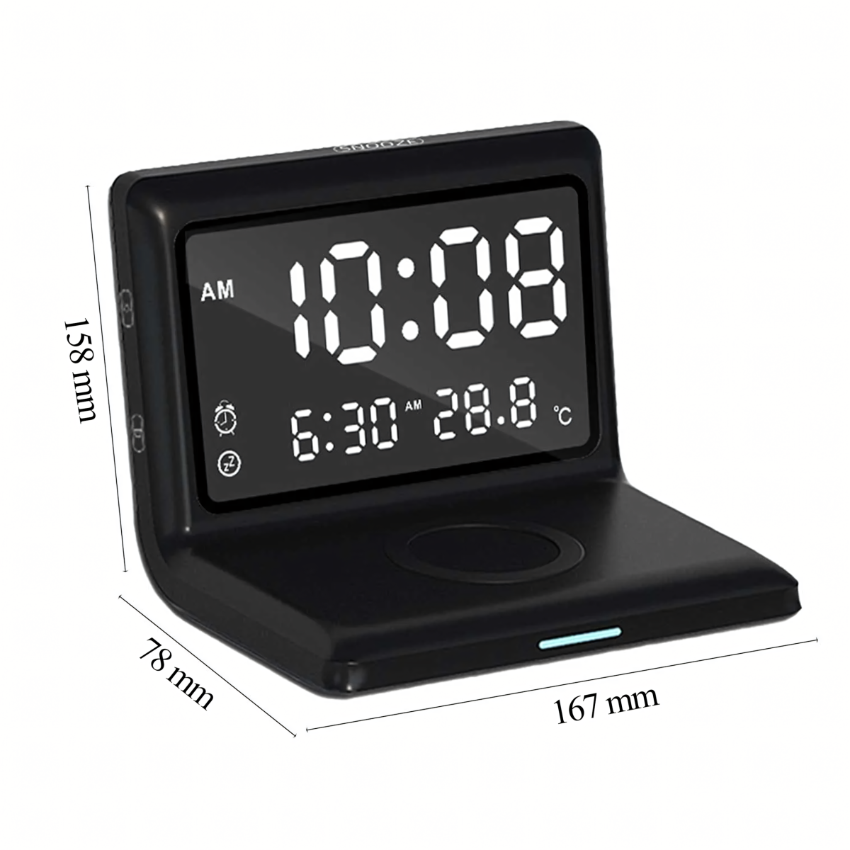 3w1 Digitaalne Äratuskell Juhtmevaba Laadija 15W Temperatuur Peegel