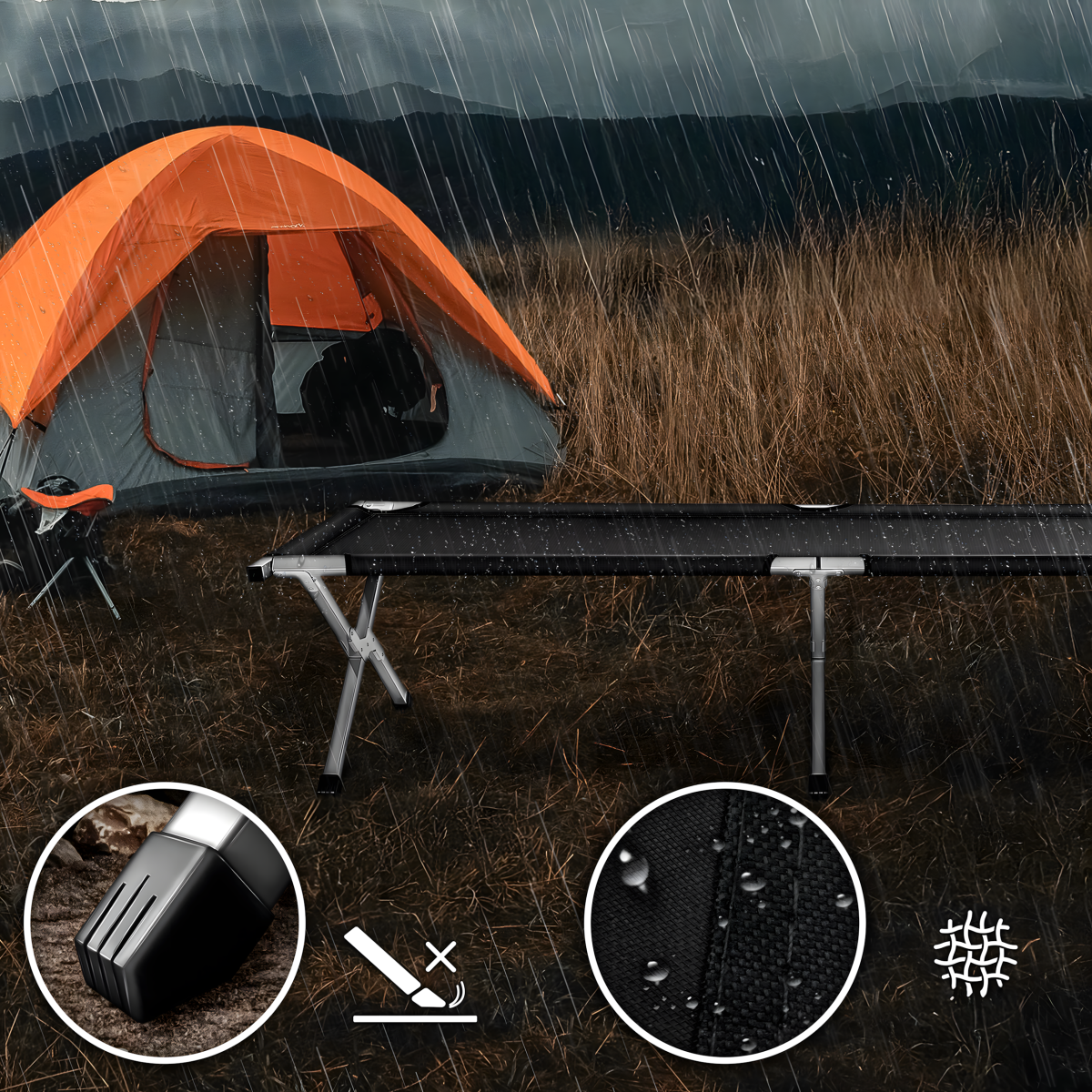 mugav ja vastupidav lahendus puhkuseks, telkimiseks, kalastamiseks ja ajutiseks magamiskohaks. suur xxl-mõõdus väli voodi pakub rohkem ruumi ning seda on lihtne kokku panna ja kaasa võtta.