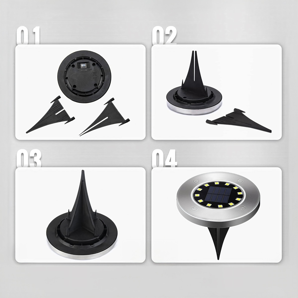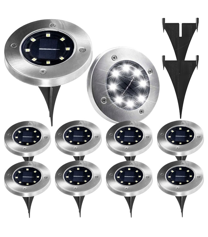 10x Päikeselamp Aial Disk LED Maapinnal Hämaraanduriga 8 LED