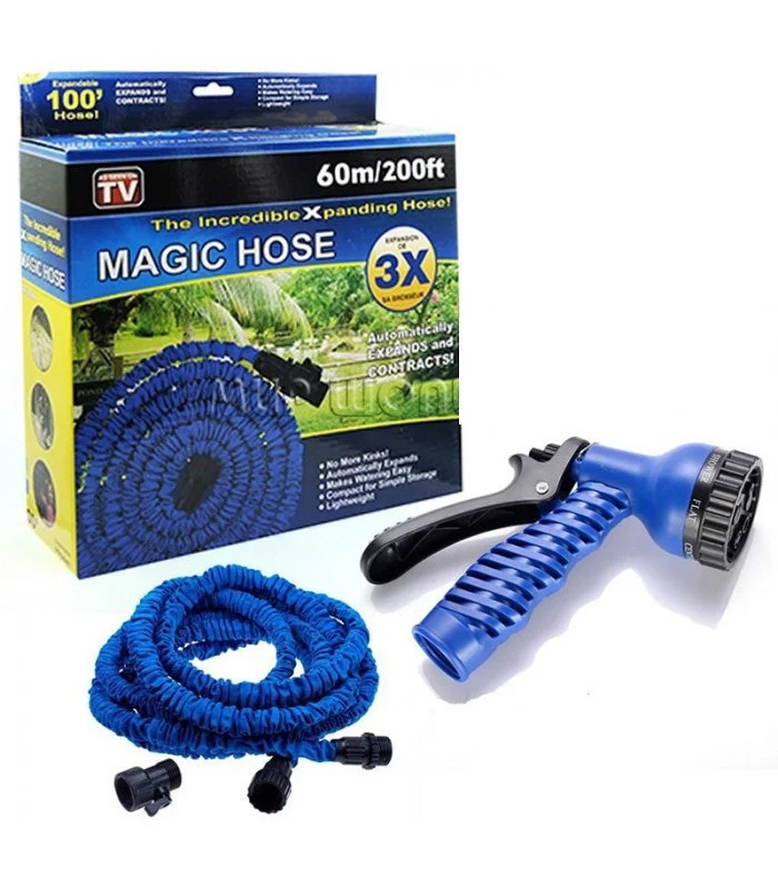 Alustades vee laskmist, pikeneb voolik 3 korda, ja vee väljalaskmisel tõmbub tagasi. Selle uuendusliku voolikuga ei pea te enam muretsema! Erakordse disainiga voolik pikeneb veevoolu alustamisel ja tõmbub tagasi kohe pärast vee sulgemist! Vooliku algne pikkus on 20m, kuid veega pikeneb see kuni 60m!