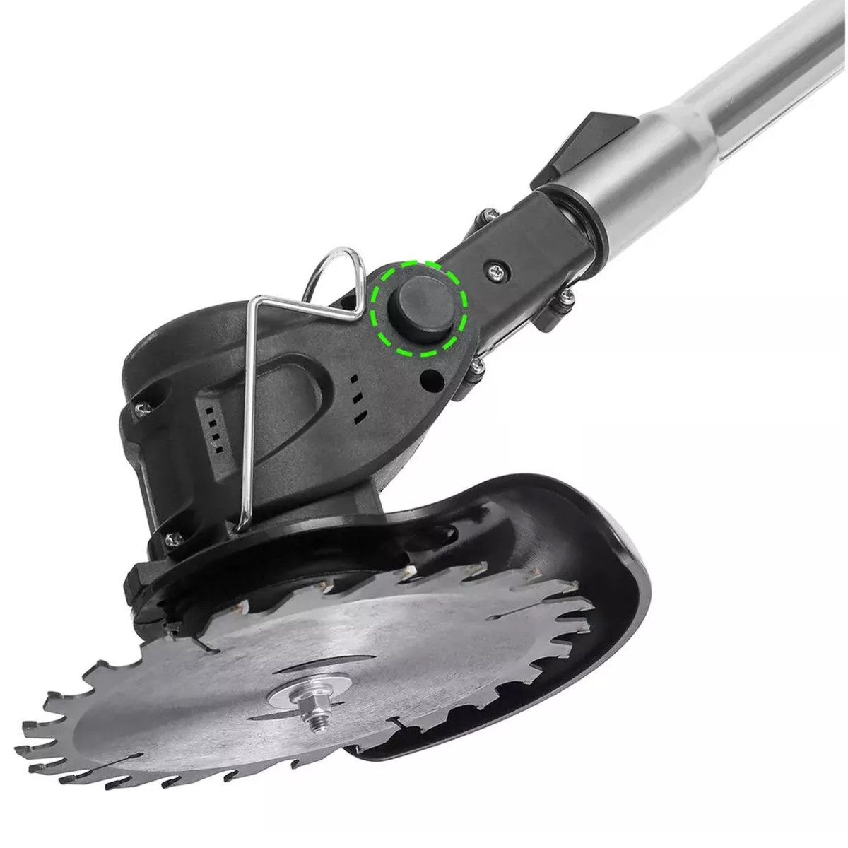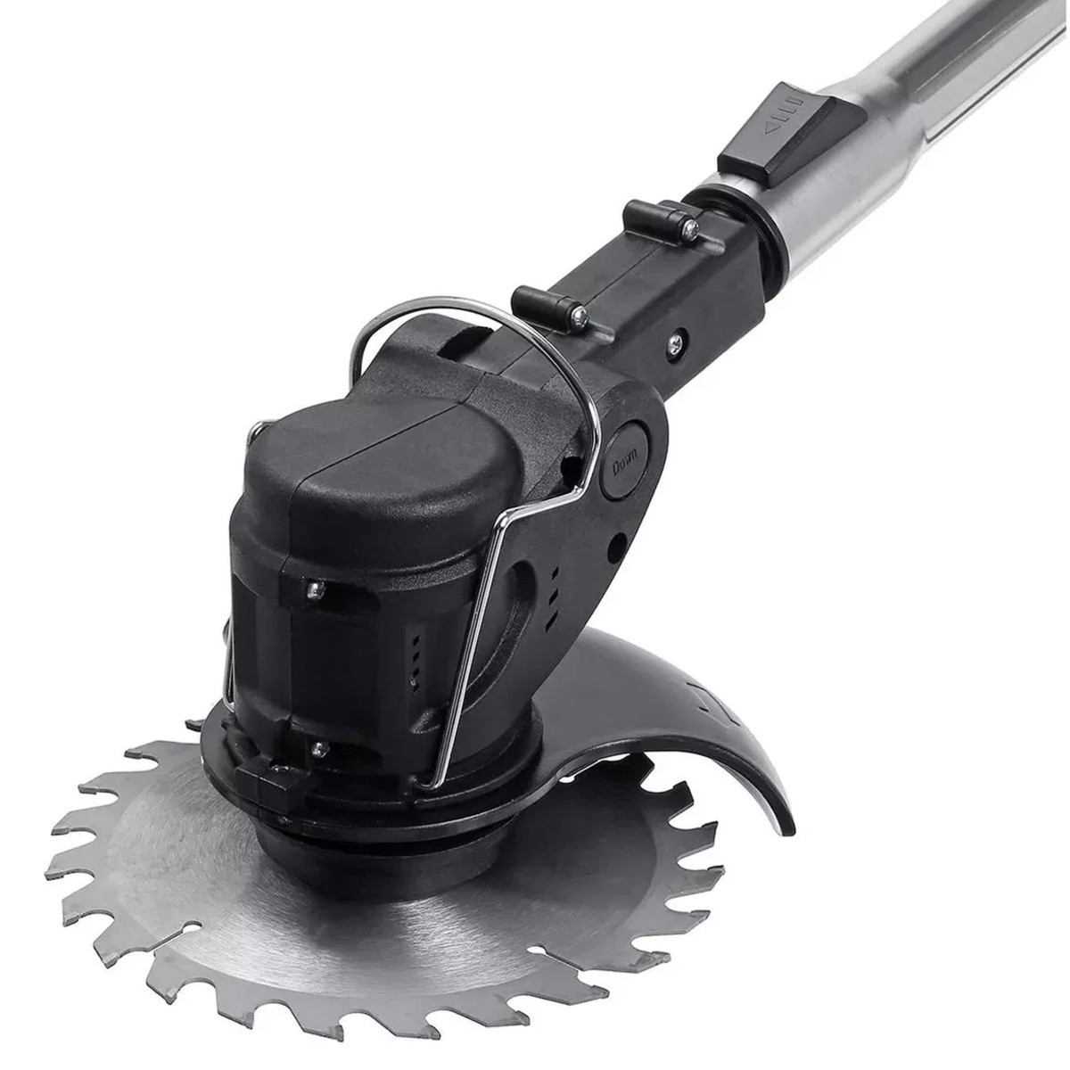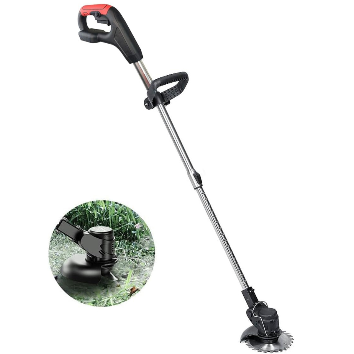 Akutoitega murutrimmer, mis sobib ideaalselt aiapidamiseks. See komplekt sisaldab akutoitega murutrimmerit, laadijat, kahte metallist tera, viit plastteraga teraketta, ühte karbiidketast ja kasutusjuhendit.