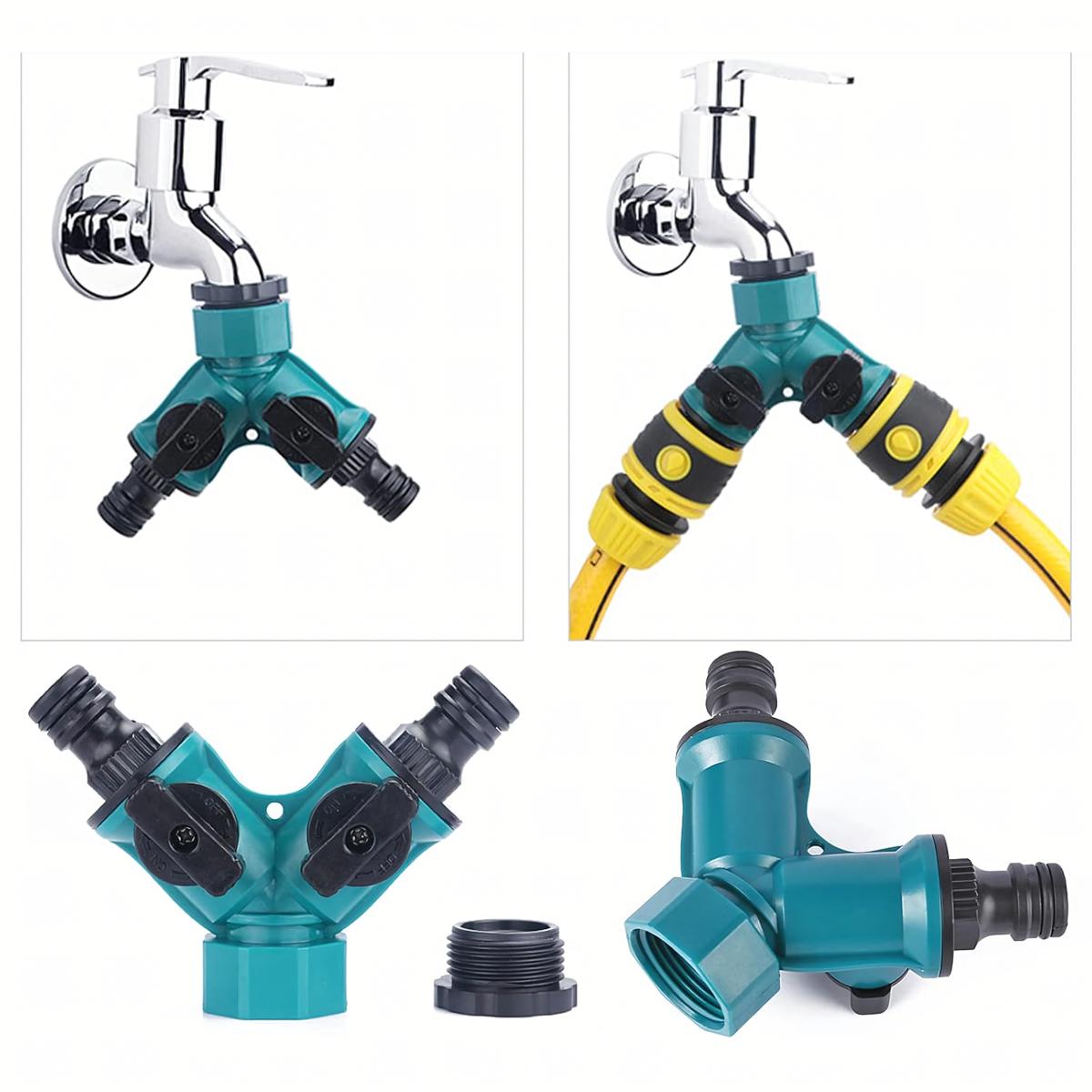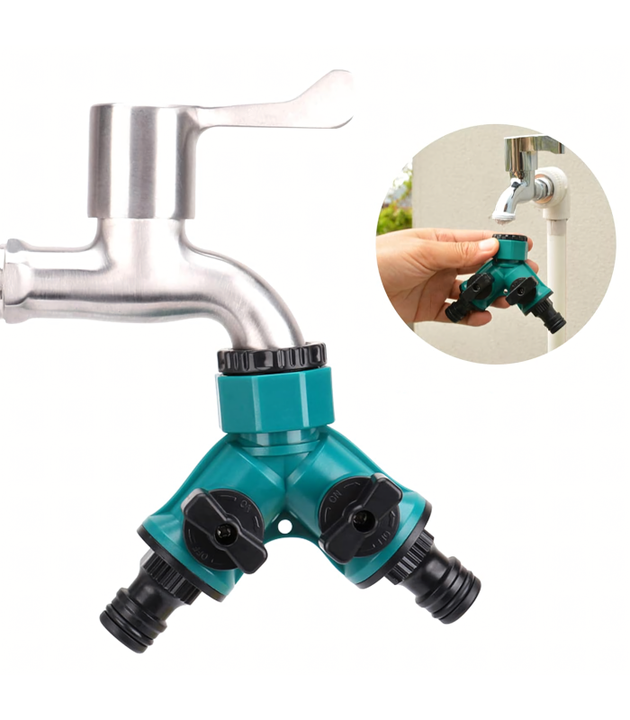 Praktiline ja vastupidav jaotur kraanile, mis võimaldab ühendada kaks voolikut üheaegselt ning mugavalt juhtida vee voolu. Ideaalne aeda, krundile ja niisutussüsteemidele.