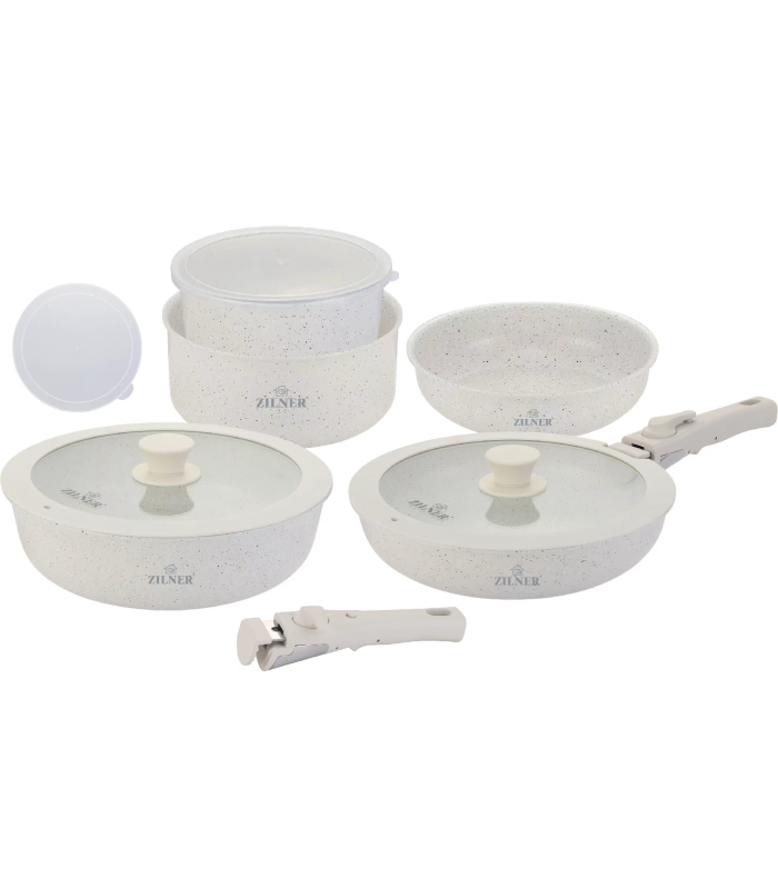 Kivimassi 11-osaline pottide ja pannide komplekt eemaldatava käepidemega, ZILNER ZL-8571