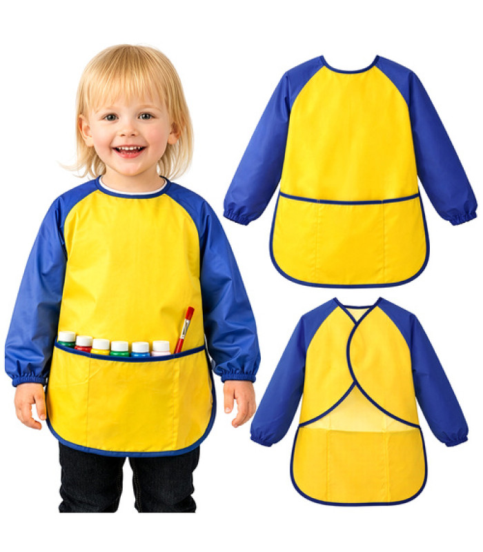 - Tõhus riiete kaitse - veekindel materjal kaitseb riideid värvide, liimi ja tindi eest, võimaldades lapsel keskenduda ainult mängule