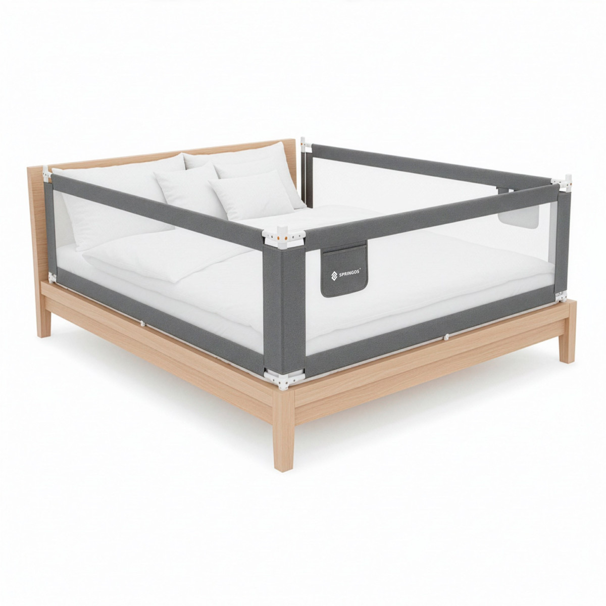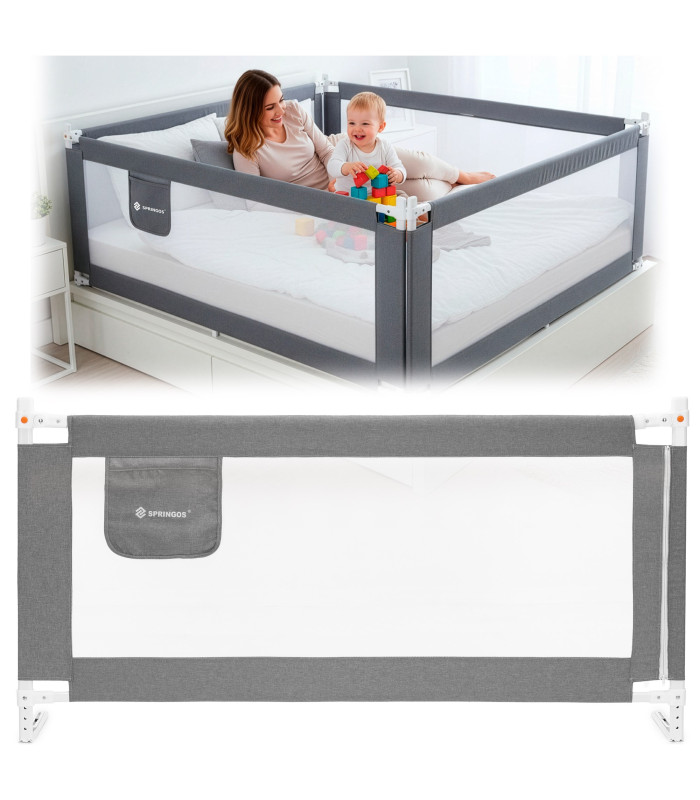Turvavoodipiire 160 cm, universaalne, kaitsev, lastele, kokkupandav, hall