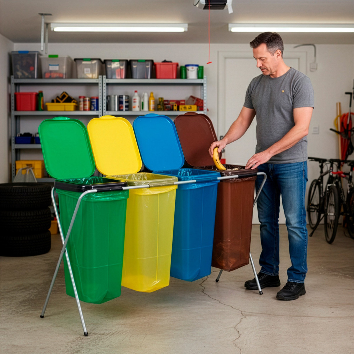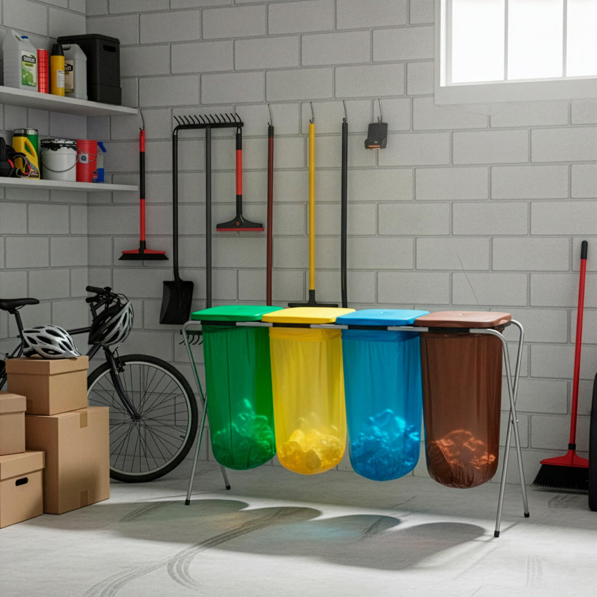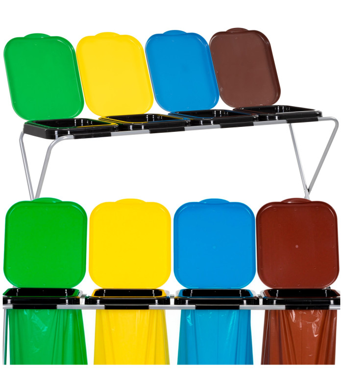 Kaubamärk: Springos® Materjal: metall, PP Raami värv: hall Kaante värvid: roheline, kollane, sinine, pruun Sektsioonide arv: 4 Maksimaalne koormus: 30 kg Mõõdud: Kogulaius: 128 cm Kogusügavus: 42.5 cm Kogukõrgus: 74 cm Konstruktsiooniprofiilide läbimõõt: 1.5 cm Jalgade vahe laiuses: 120 cm Jalgade vahe sügavuses: 39 cm Katte kõrgus: 35.5 cm Katte laius: 29.5 cm Katte servade paksus: 0.2 mm Lisainfo: Libisemisvastased katted jalgadel. Kattel on sisemine survelapp, mis hoiab koti paigal. Kate paigaldatakse klõpskinnitusega käepideme abil. Stabiilne ja kerge konstruktsioon.