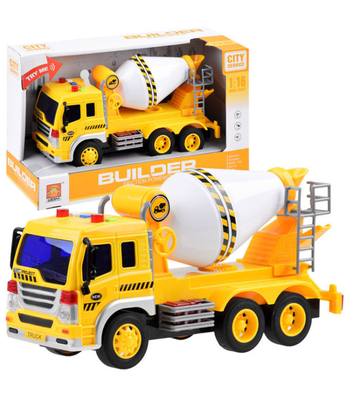 Betoonimikser, tuntud ka kui "pirn", on vastupidav auto pöörleva trumliga. Trummel pöörleb väntmehhanismi abil. Kogu konstruktsioon on väga hea ja lihtne juhtida. Toode on valmistatud kvaliteetsest plastikust. Auto paistab silma oma kaasaegse välimuse, detailide hoolikuse ja värvilahenduse poolest, mis on sellele sõidukile sobiv. Komplekt sobib suurepäraselt mängimiseks kodus, aias või liivakastis, olles ideaalne lastele alates 3. eluaastast. Auto suurim atraktsioon on realistlikud helid, mis kostuvad, kui vajutada nuppe, mis asuvad betoonimikseri kabiini katusel.
