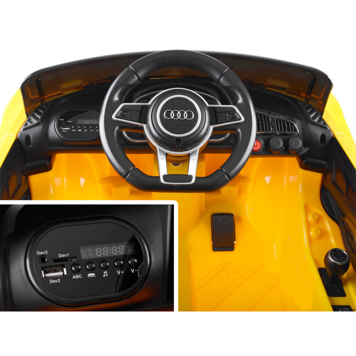 See Audi kaubamärgi all olev auto pakub lastele tõelisi sõiduelamusi. Häälte ja valgusefektid ning mugav juhtmetega iste tagavad mugavuse. EVA vahtmaterjalist pehmed rattad tagavad sujuva sõidu ning avatavad uksed muudavad sisenemise mugavaks. Vanematele mõeldud kaugjuhtimispult võimaldab kontrollida sõidu suunda ja turvalisust.