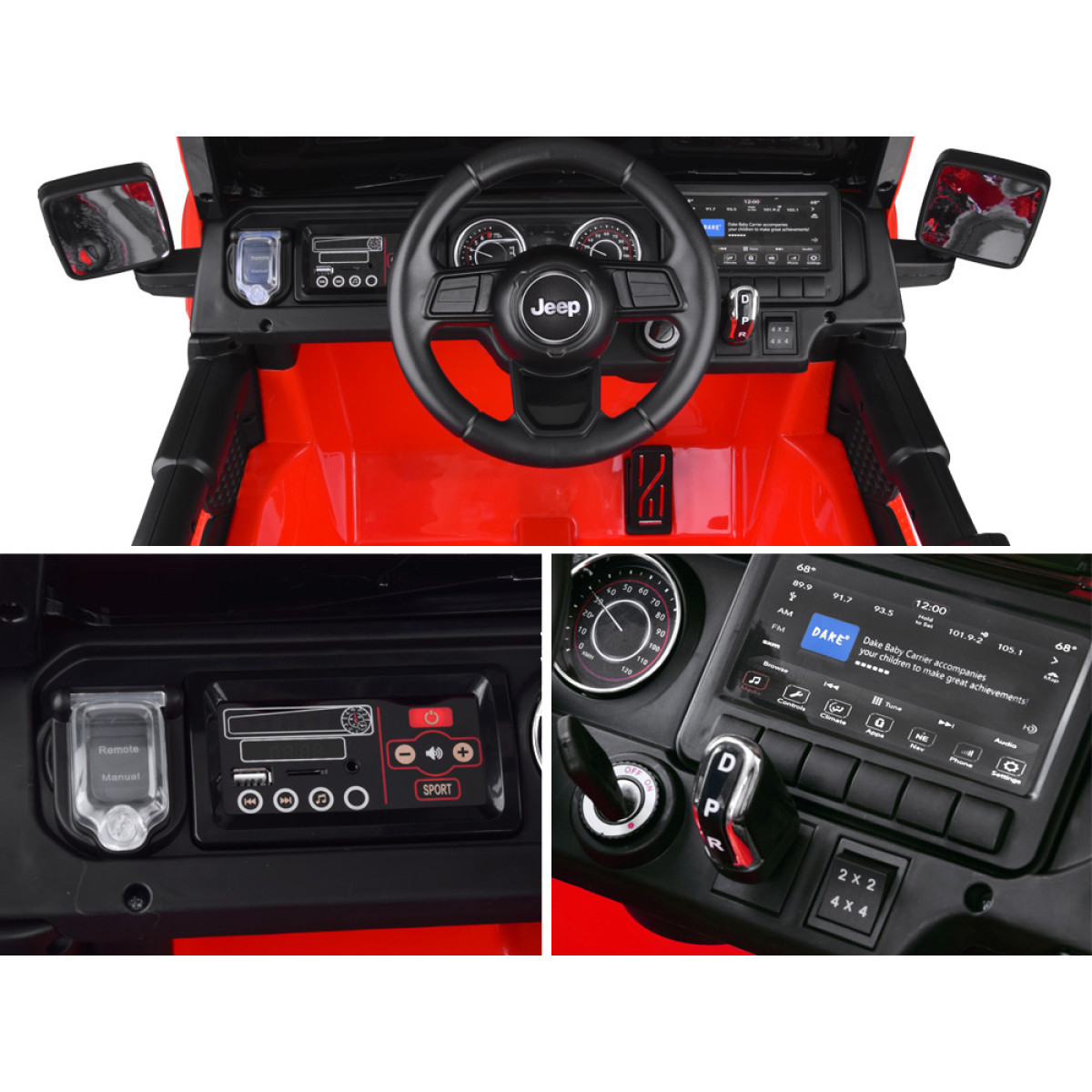 Autos on ka pagasiruum vajalike asjade jaoks ning avatav esikapott. Vasakul paneelil oleva lüliti abil saab valida, kas autot juhitakse ainult puldiga või sõidab laps sellega ise.