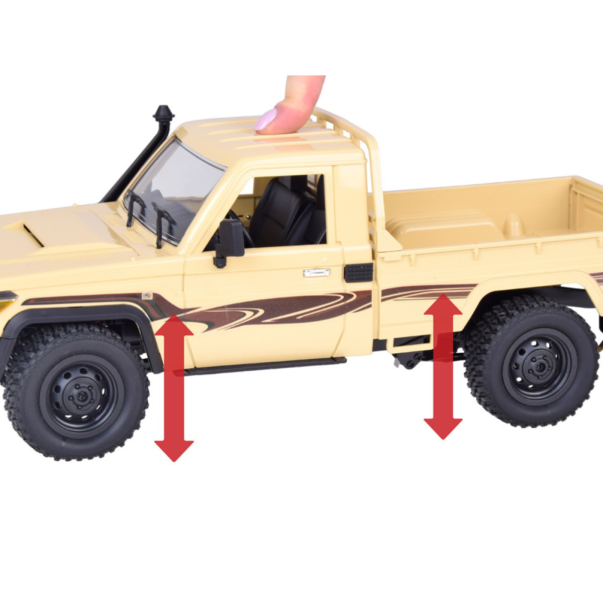 - Realistlik disain: Detailne kereviimistlus, avatav kapott, haagis, kummist rehvid ja Toyota Land Cruiseri iseloomulikud detailid.