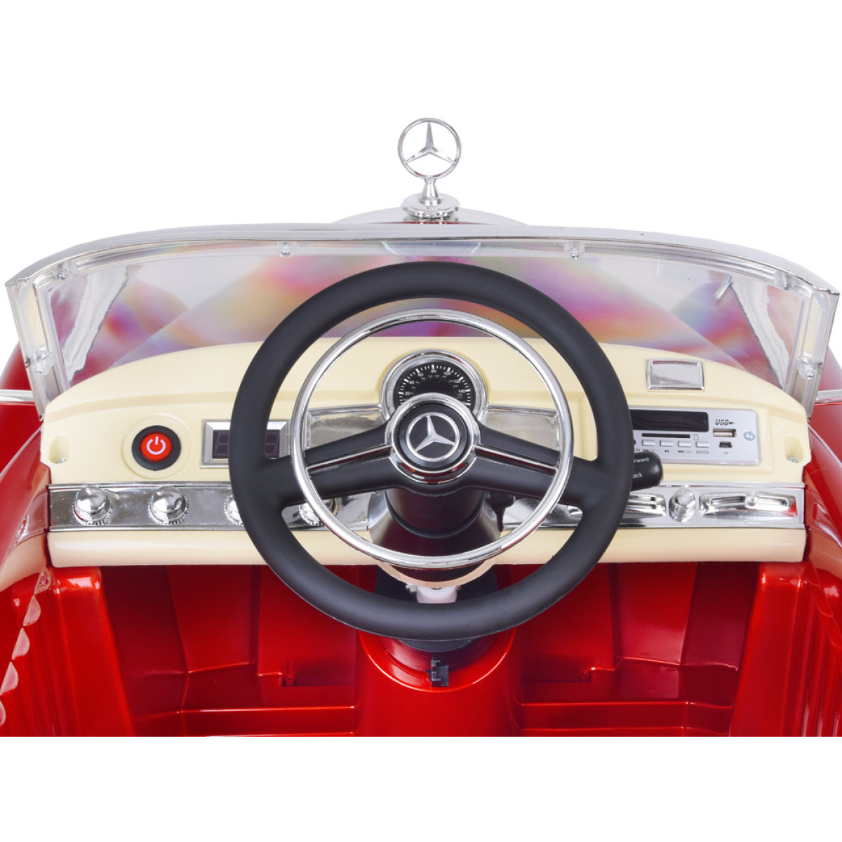 See lasteauto on varustatud päris fm-raadioga ning toetab usb, mini usb ja sd-kaarti. Muusika ja meloodiad muudavad iga sõidu veel lõbusamaks. Sõidu ajal põlevad esituled ning armatuurlaual on valgustatud näidikud. Roolil asuvad nupud võimaldavad vahetada muusikat ja kasutada meloodiaid.
