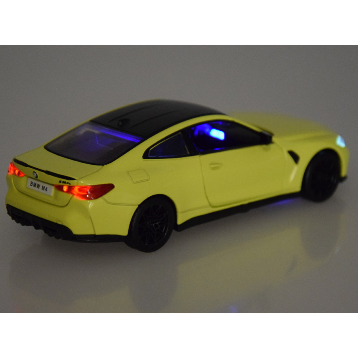 Kui avate metallist BMW M4 auto uksed, kuulete signaali ja äratuse heli. Kui vajutate auto vastu maad, aktiveerib see mootori käivitamise ja töötamise heli. Heli-efektidega kaasnevad esituled, tagatuled ja valgustatud armatuurlaud. Kogu auto kere on metallist, rattad on kummist ja šassii on plastikust.