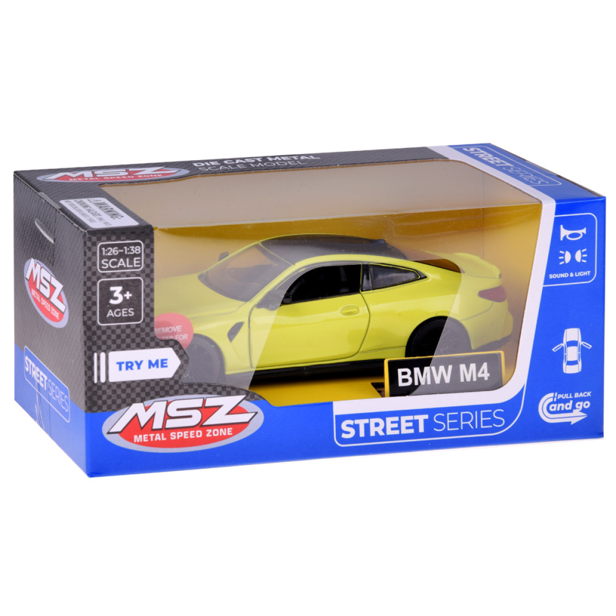 BMW M4 mõõtkavas 1:32 on suurepärane täiendus autode mudelikollektsioonile. Sportauto on hoolikalt ja esteetiliselt valmistatud, pöörates tähelepanu väikseimatele detailidele, mis kindlasti rõõmustab iga väikest juhti. Autol on avanevad uksed ning heli- ja valgusefektid. BMW-l on hõõrdejõul töötav vedav jõuallikas, mis tähendab, et kui autot tõmmata tagasi siledal pinnal, liigub see edasi. Auto töötab ka lükates.