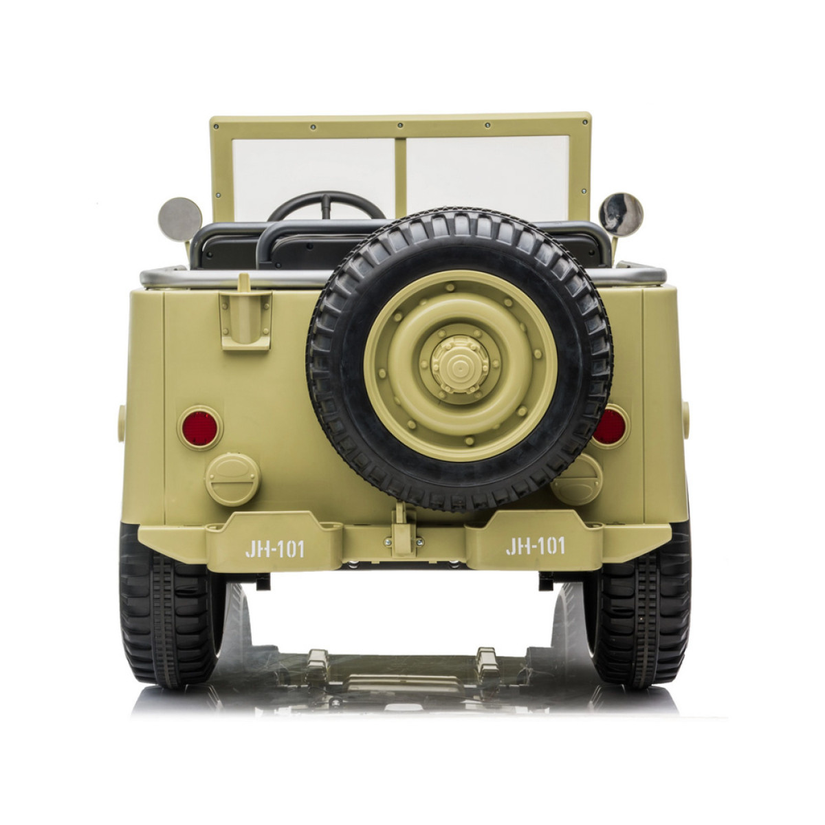 Sõjaline maastikusõiduk on ideaalne valik kõikidele lastele, kes armastavad militaarseid teemasid. Tugev ja vastupidav maastikuauto, mis suudab täita igasuguseid sõjalisi ülesandeid. Sõiduk on varustatud vajalike tarvikute ja tugevdustega ning sellel on neljarattavedu, mida saab lülitada kahe mootori režiimile, andes juhile kontrolli. Autol on panipaigad, pagasiruum ja labidas. See on varustatud heliefektide, valguslahenduste, kokkupandava esiklaasi ja laiade istmetega. Sõidukit saab juhtida piloodi või juhi enda poolt.