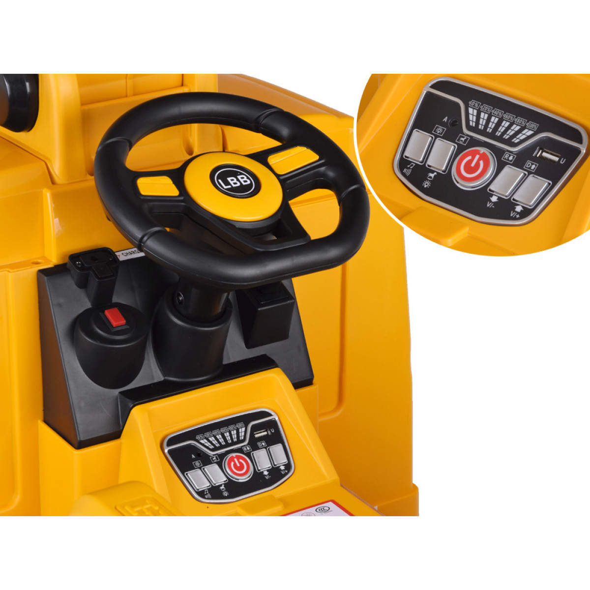 Kraana käivitamine toimub lihtsa nupuvajutusega, millega kaasneb mootori heli ja värvilised vilkuvad tuled. Masinal on gaasi- ja piduripedaal, mis peatub automaatselt, kui jalg eemaldatakse gaasipedaalilt. Roolil on kaks nuppu helisignaali ja muusika vahetamiseks.