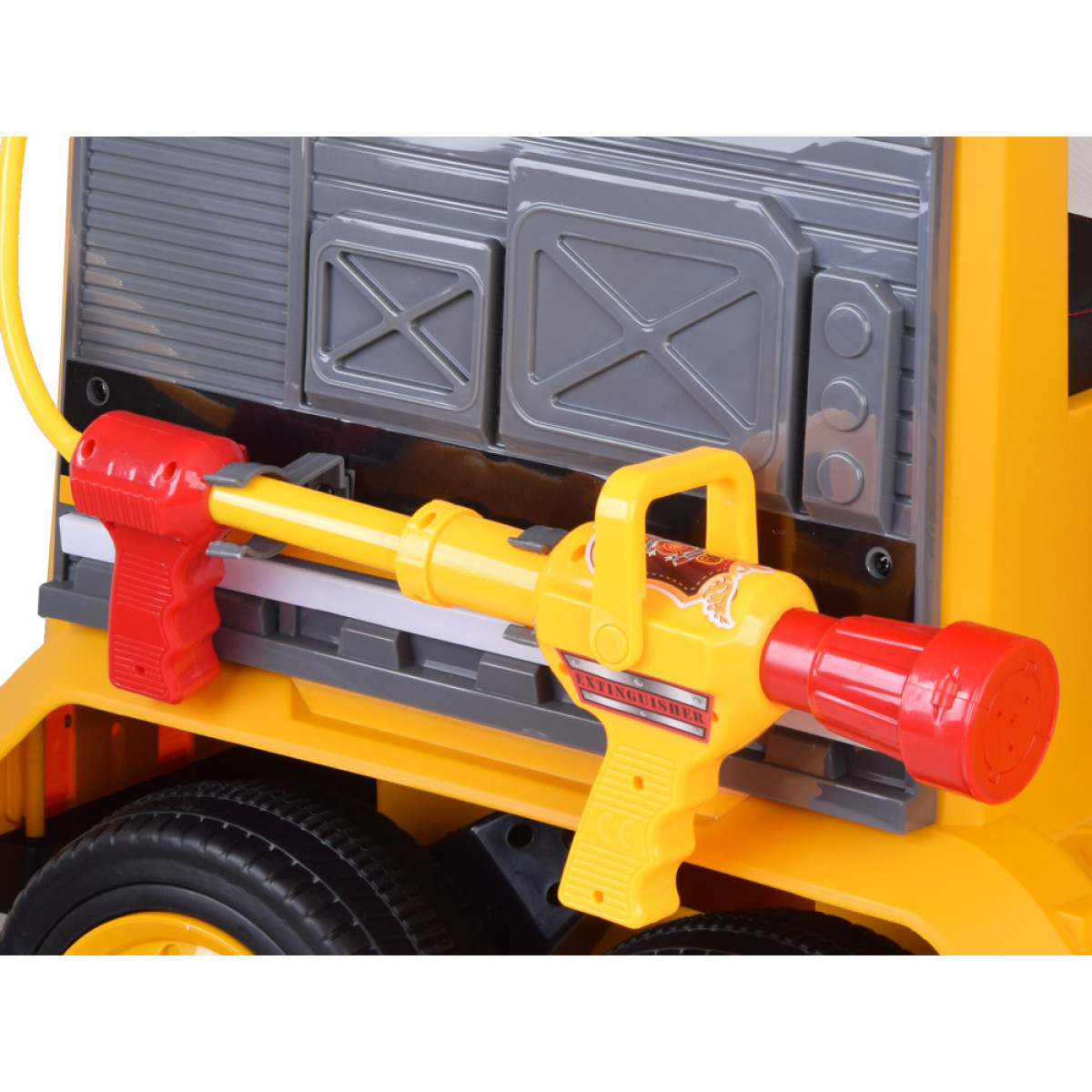 Kraana juhtimiseks on olemas ka kraana käepide ja konksu juhtimiseks korv. Lisaks on kraanal veepaak ja pihusti, et väike juht saaks mängida tuletõrjujat või kasta lilli.