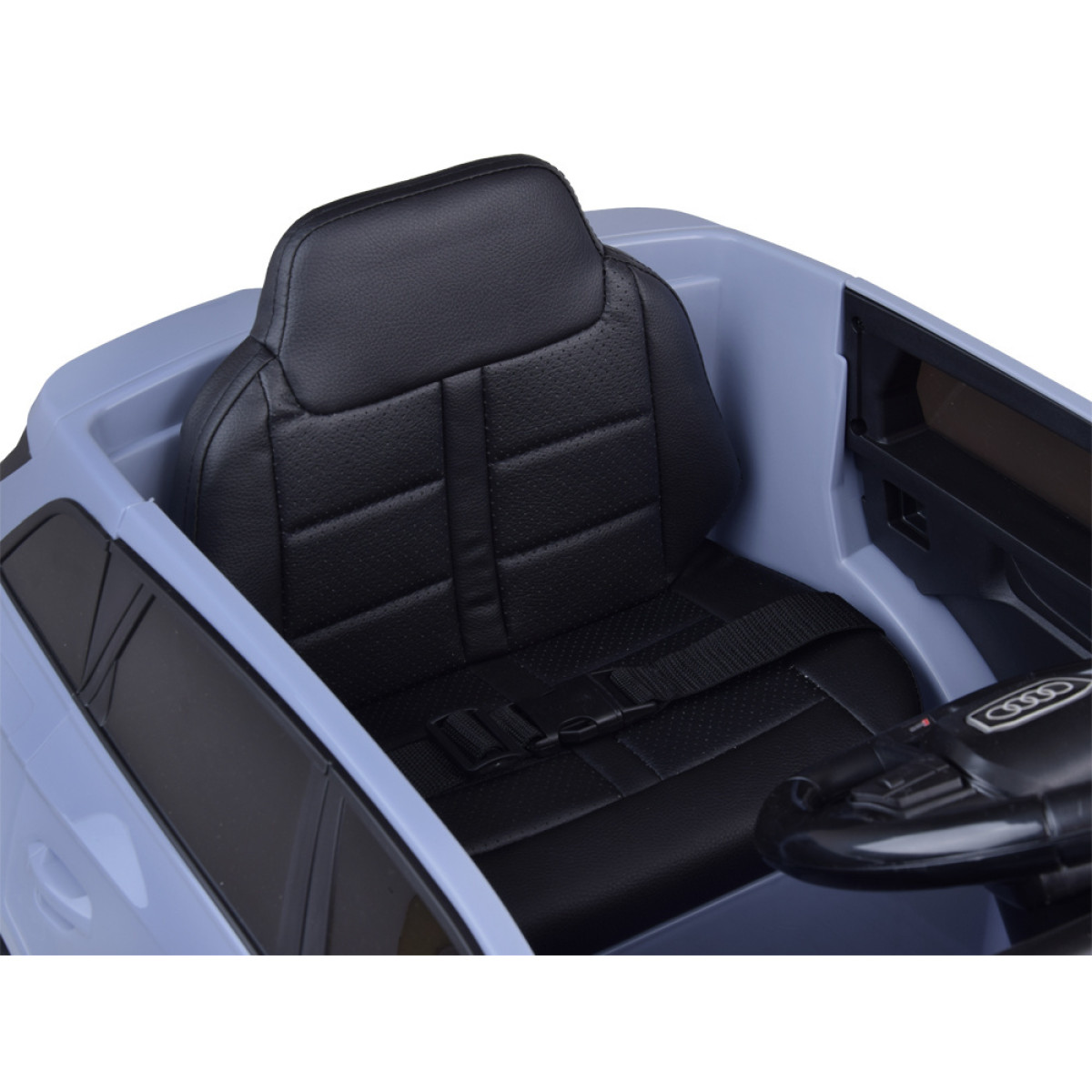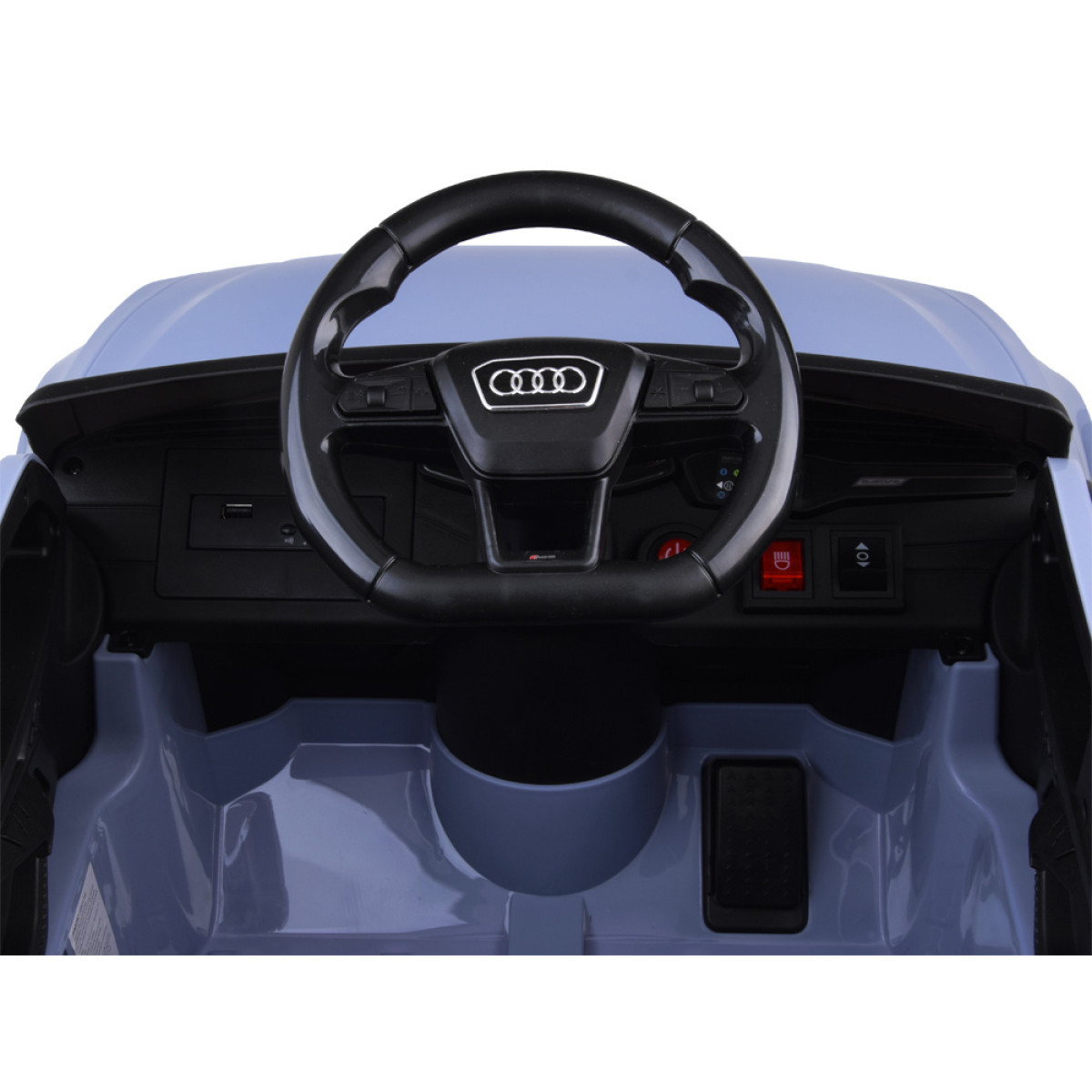 Auto käivitub punase nupuga, millega kaasneb mootori käivitusheli. Armatuurlaual on nupp, mis juhib valgustust (ees- ja tagatuled). Avatavad uksed muudavad autosse sisenemise ja sealt väljumise mugavaks, võimaldades lapsel lõbu ise doseerida. Auto sees on mugav ökonaahast kaetud iste. Lapse ohutuse tagamiseks sõidu ajal on istmel ühekohaline puusavöö. Sportlikul Audil on muusikapaneel sisseehitatud meloodiatega, samuti MP3 ja USB sisend, seega saab sõidu ajal kuulata lemmiklaule või muinasjutte. Paneelil on ka helitugevuse reguleerimine. Multimeedia rool on varustatud kahe nupuga, mis vahetavad lugusid ja käivitavad signaali. Tänu valgustatud näidikutele (imitatsioonid) armatuurlaual näeb auto veelgi realistlikum välja. EVA vahust rehvid tagavad suurema sõidumugavuse. Auto on varustatud elektrilise piduriga, mis aktiveerub, kui jalg tõstetakse gaasipedaalilt. Rooli ja iluvõre kaunistavad Audile iseloomulikud märgid.