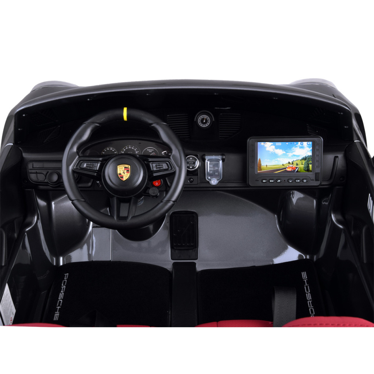 Hall, elegantne värv annab autole sportliku ilme, ja punased kunstnahast istmed loovad luksusliku atmosfääri nagu tõelises Porsches. Täiuslikkust lisavad hoolikalt kujundatud detailid - tagaspoiler, eemaldatavad vaibad Porsche logoga ja LED-tuled, mis peegeldavad originaalvalgustust Zuffenhauseni mudelitelt.