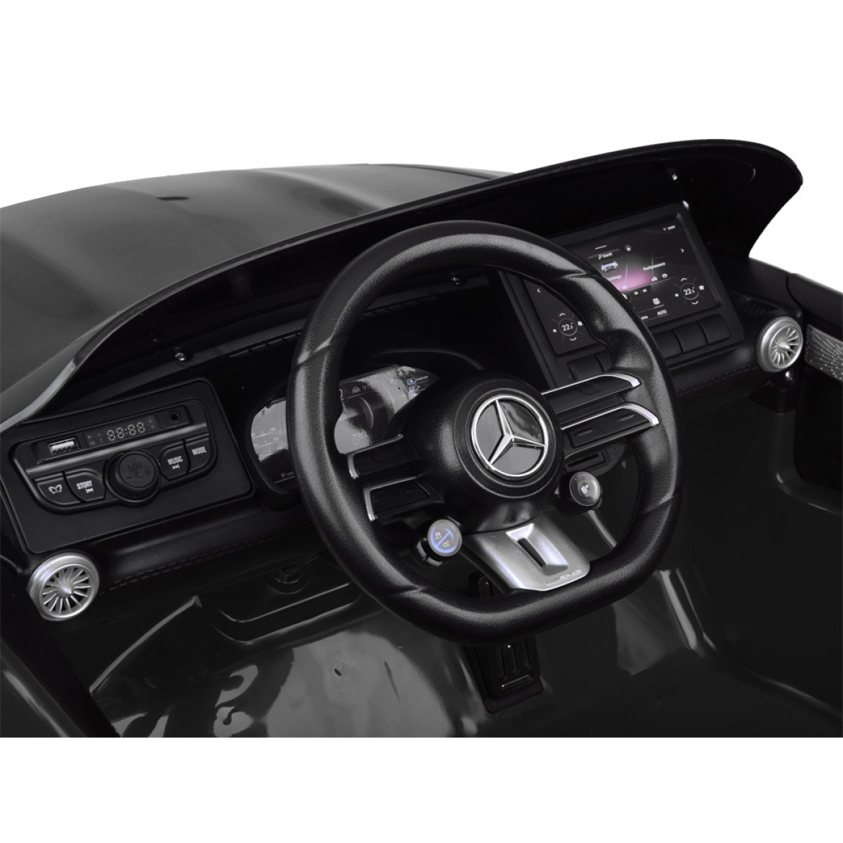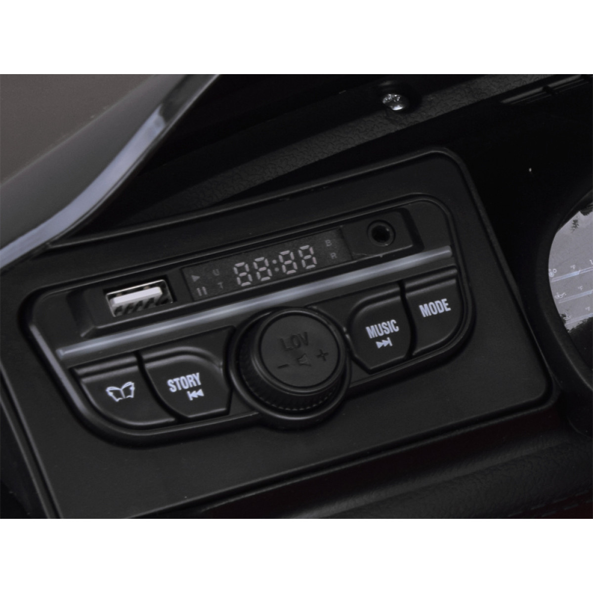 auto käivitub nupust ning käivitamisel kostab mootori käivitamise heli. sõidukil on ka muusikapaneel sisseehitatud laulude ja ingliskeelsete lugudega. sõidu ajal saab kuulata raadiot ning tänu usb- ja mp3-sisendile saab laps kuulata ka oma lemmikmuusikat. roolil on kaks nuppu, millega saab kasutada signaali ja vahetada muusikat või raadiojaama. armatuurlaual olev dekoratiivne multimeediapaneel muudab salongi veel realistlikumaks.