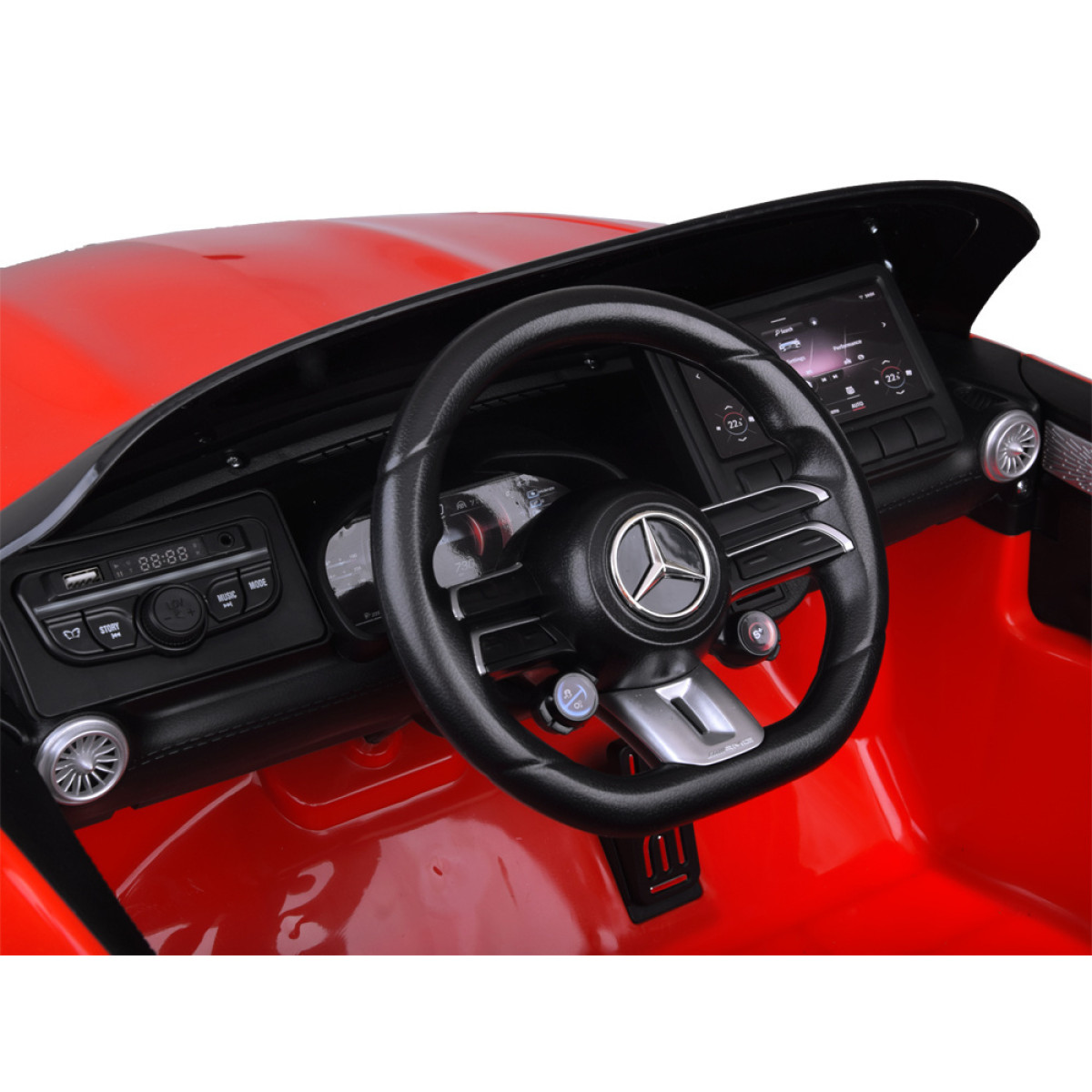 Realistlikku sõiduelamust toetavad ees ja taga led-tuled, mootori käivitamise heli ning muusikapaneel. autos on sisseehitatud laulud ja ingliskeelsed lood, samuti raadio, usb- ja mp3-sisend, et laps saaks kuulata ka oma lemmikmuusikat. roolil olevad nupud juhivad signaali ja muusika vahetamist.