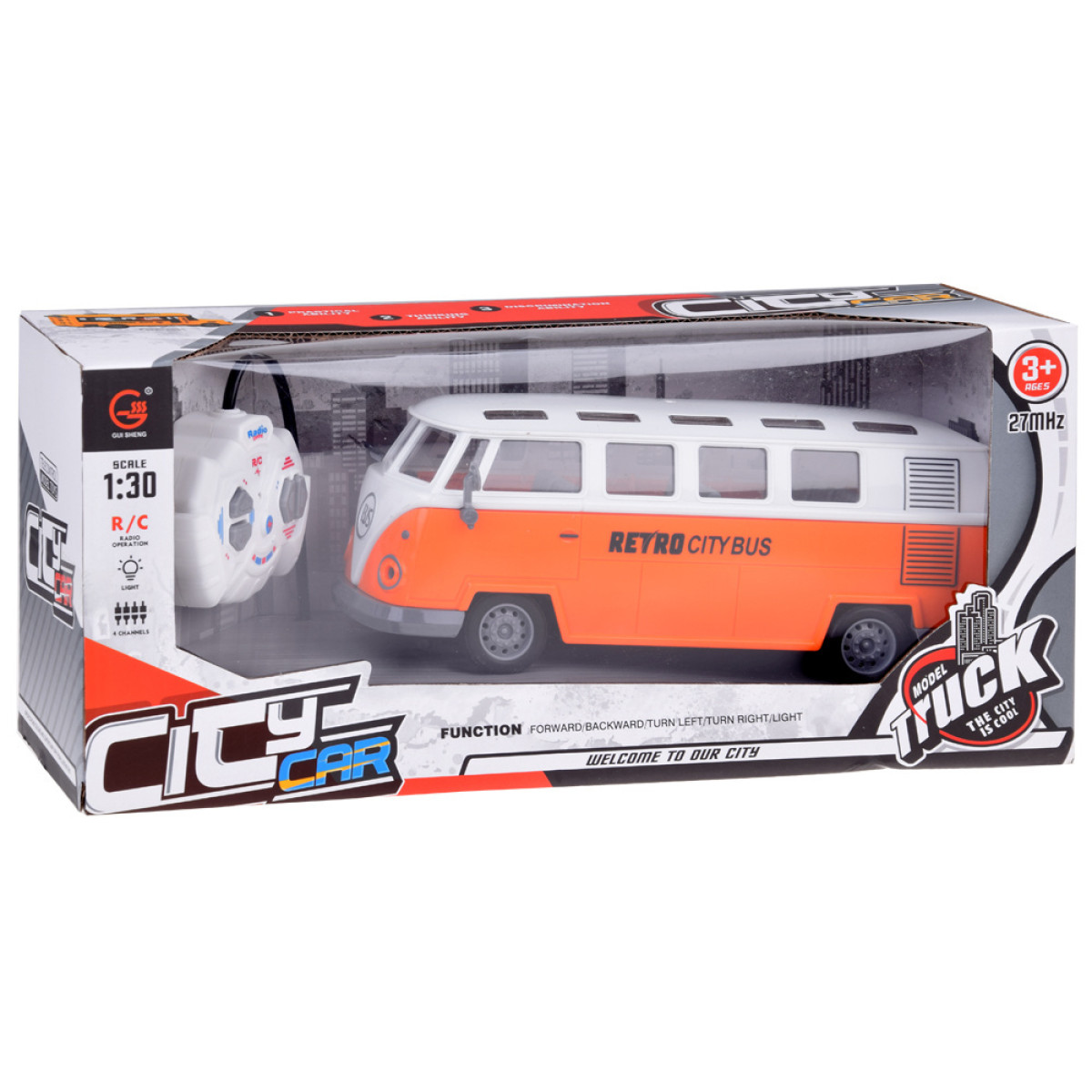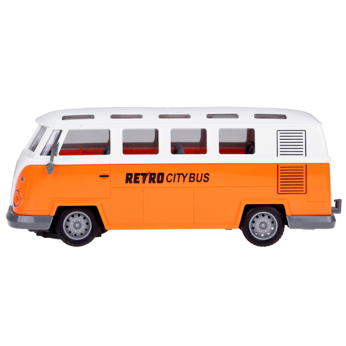Retro City Bus on varustatud turvalise kummist antenniga puldiga, mis võimaldab täielikku sõiduki juhtimist – saate sõita edasi, tagasi ning pöörata paremale ja vasakule. Plastikust konstruktsioon ja kummist rehvid võimaldavad sujuvat sõitu kodus, praktiliselt igal pinnal.