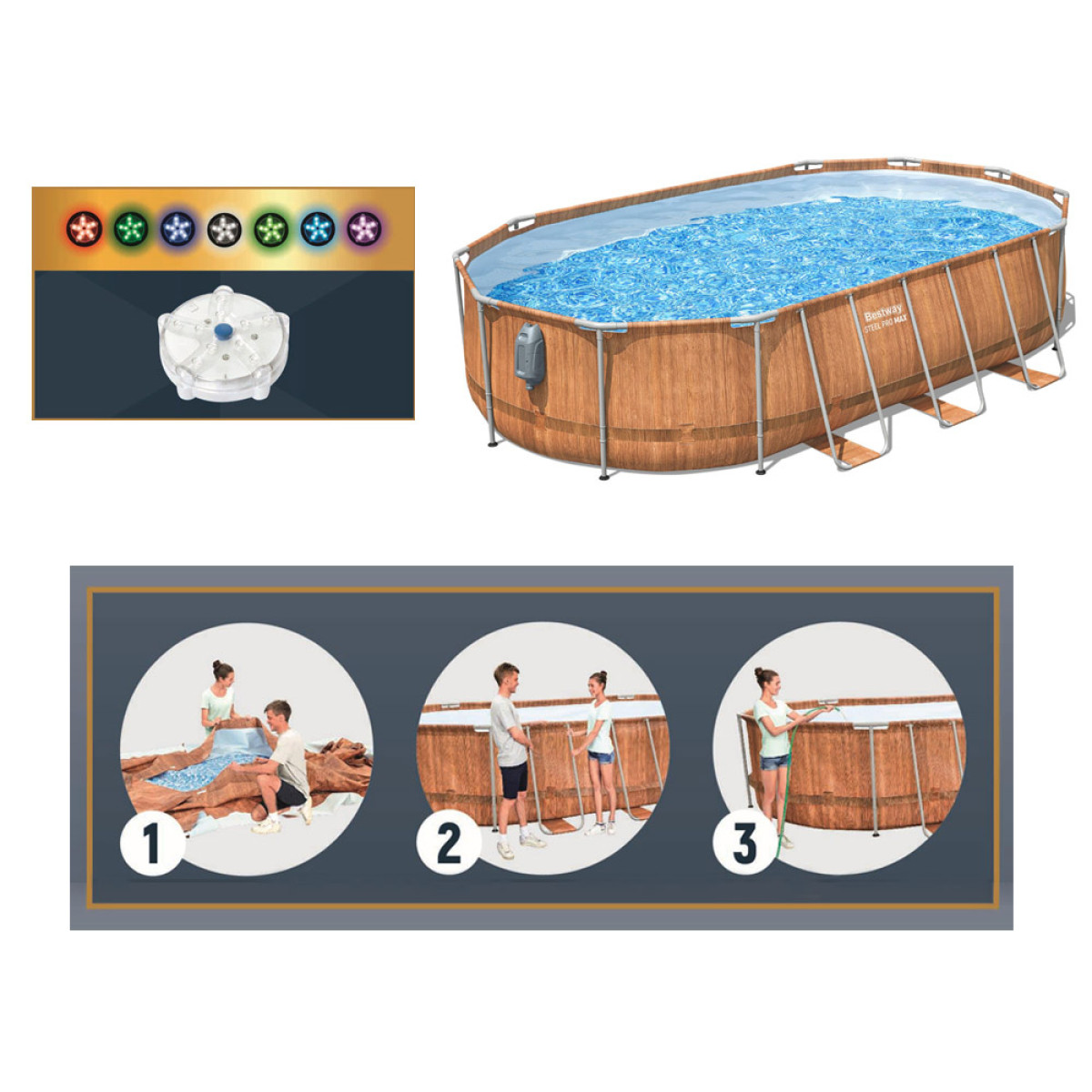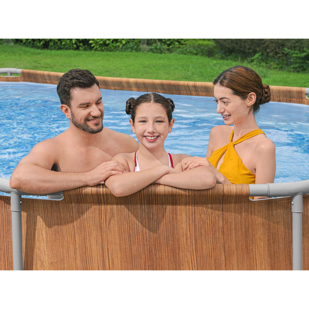 Suurepärane raamiujuline bassein Steel Pro Max Comfort Jet sarjast Bestway tootemargiga mõõtmetega 610 cm x 366 cm x 122 cm ja mahutavusega 20,241 liitrit pakub mõnusat jahutust kuumal suvepäeval. Selle ainulaadne puidumustriga disain sobitub ideaalselt teie aeda. Lisaks on bassein varustatud masseerivate düüsidega ja lihtsa juhtimissüsteemiga.