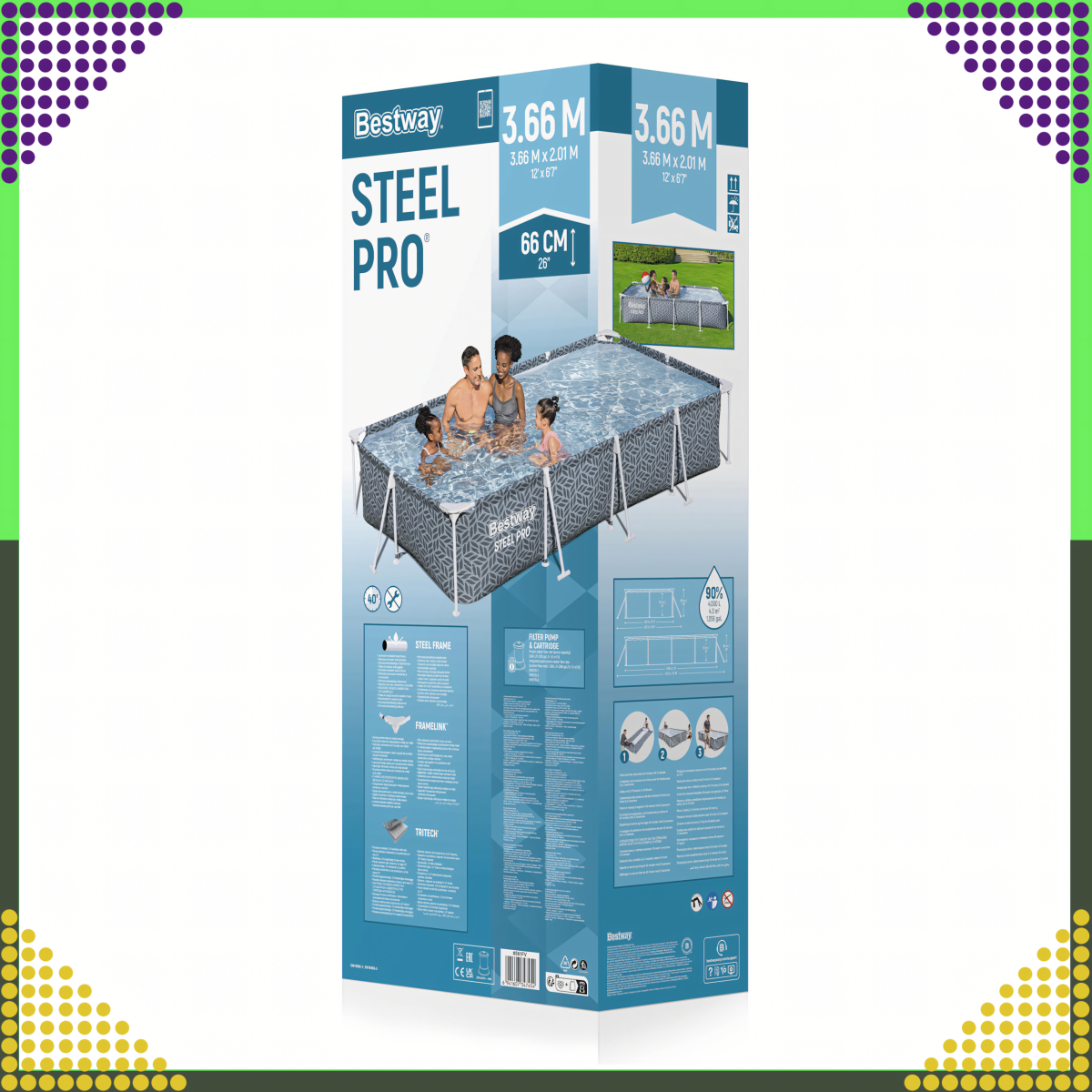 Bestway 561FV Steel Pro bassein on ideaalne valik suvepuhkuseks. Selle mõõtmed on 366x201x66 cm, mis sobib suurepäraselt aeda. Lihtne paigaldus võimaldab teil kiiresti nautida veemõnusid. Bassein on valmistatud vastupidavast terasraamist ja kõrgekvaliteedilisest PVC-st, tagades pikaajalise kasutuse. Ruumisäästlik disain võimaldab selle hõlpsat hoiustamist hooaja lõpus. Nautige jahutavat suveelamust oma pereringis.