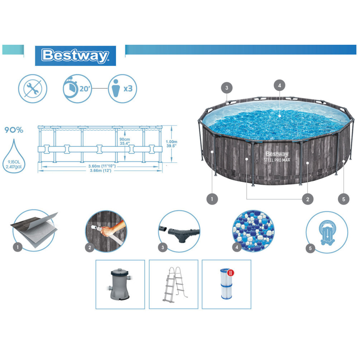 Bestway Steel Pro MAX 366x100cm bassein