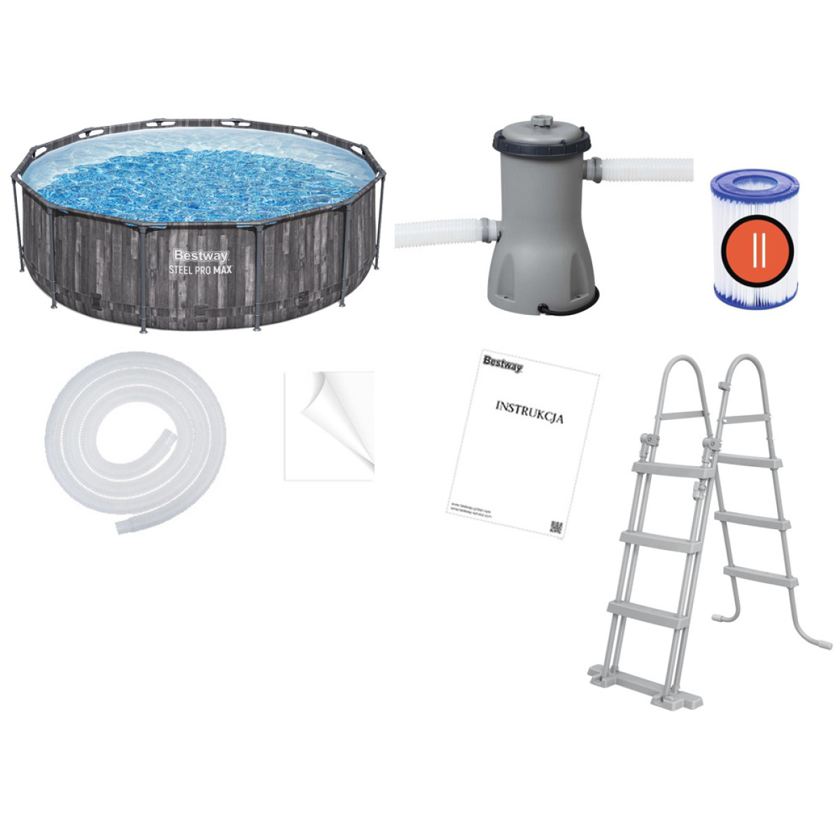 Komplektis on mugav redel, mis hõlbustab basseini sisenemist ja väljumist. Redelil on tõstetavad astmed, et vältida laste iseseisvat basseini kasutamist, kui läheduses pole täiskasvanut.