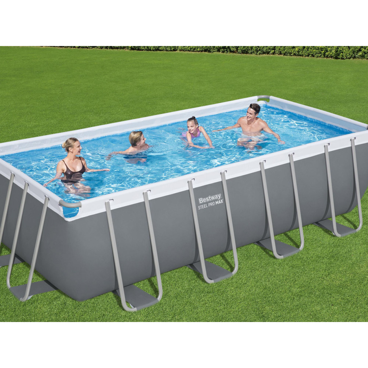 Bestway Steel Pro MAX™ basseini muljetavaldavad mõõtmed 488 x 244 x 122 cm ja mahutavus 11 532 liitrit tagavad mugava jahutuse kuumadel päevadel. Basseini suurus ja sügavus muudavad selle nii lastele kui täiskasvanutele erakordselt mugavaks. Imeline ristkülikukujuline bassein võimaldab kogu perele kuumal päeval jahedust.