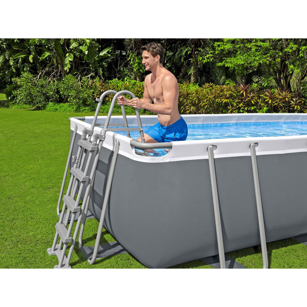 Bassein on varustatud mugava ja ohutu redeliga, mis võimaldab astmete lihtsat ja kiiret eemaldamist, kui basseini ei kasutata. Nii ei pääse lapsed basseini ilma täiskasvanu järelvalveta.