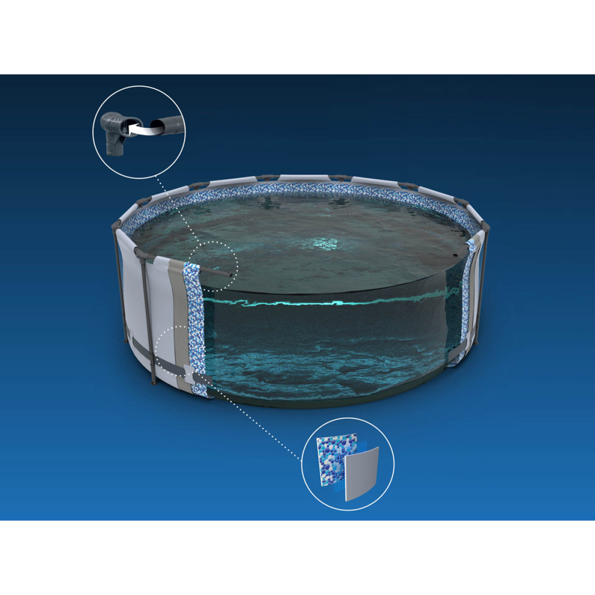 Basseini mahub 23,062 liitrit vett, mis võimaldab ka sukeldumist. Kiireks vee tühjendamiseks on spetsiaalsed ventiilid. Pumba ja filtriga saab hoida vee puhtana, et nautida suvepuhkust värskes vees. Basseinikate kaitseb vett, kui bassein ei ole kasutuses.