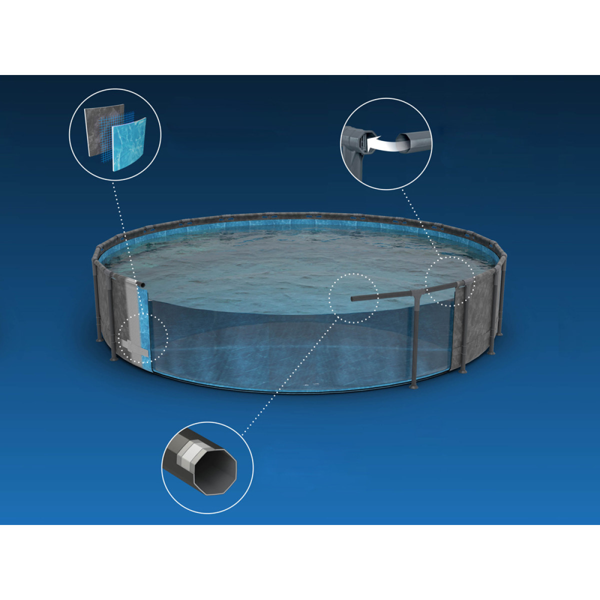 Polar-Shield™ tehnoloogia kaitseb basseini ilmastikutingimuste eest, olles sobiv nii suviseks lõbutsemiseks kui ka talviseks säilitamiseks.
