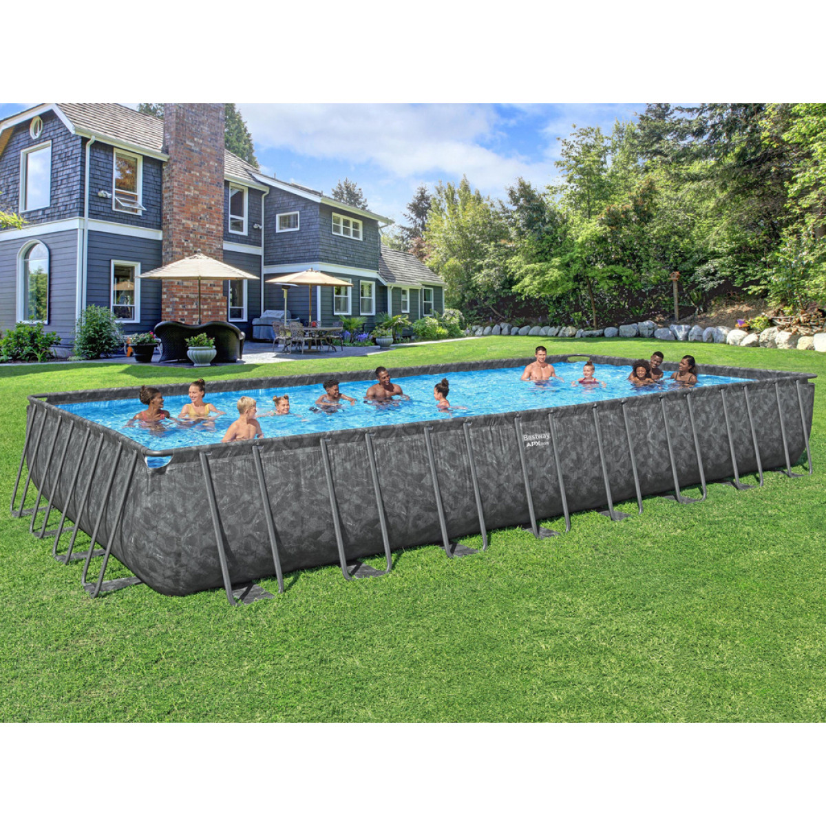 Bestway APX 365™ aedbassein on premium-klassi lahendus, mis on loodud kõige nõudlikumatele kasutajatele. See pakub suurepärast meelelahutust, lõõgastust ja jahutust kogu perele. Tänu erakordselt vastupidavale konstruktsioonile võib see jääda aeda aastaringselt. See on ideaalne valik neile, kes ootavad kõrgeimat kvaliteeti, vastupidavust ja kasutusmugavust hooaeg hooaja järel.