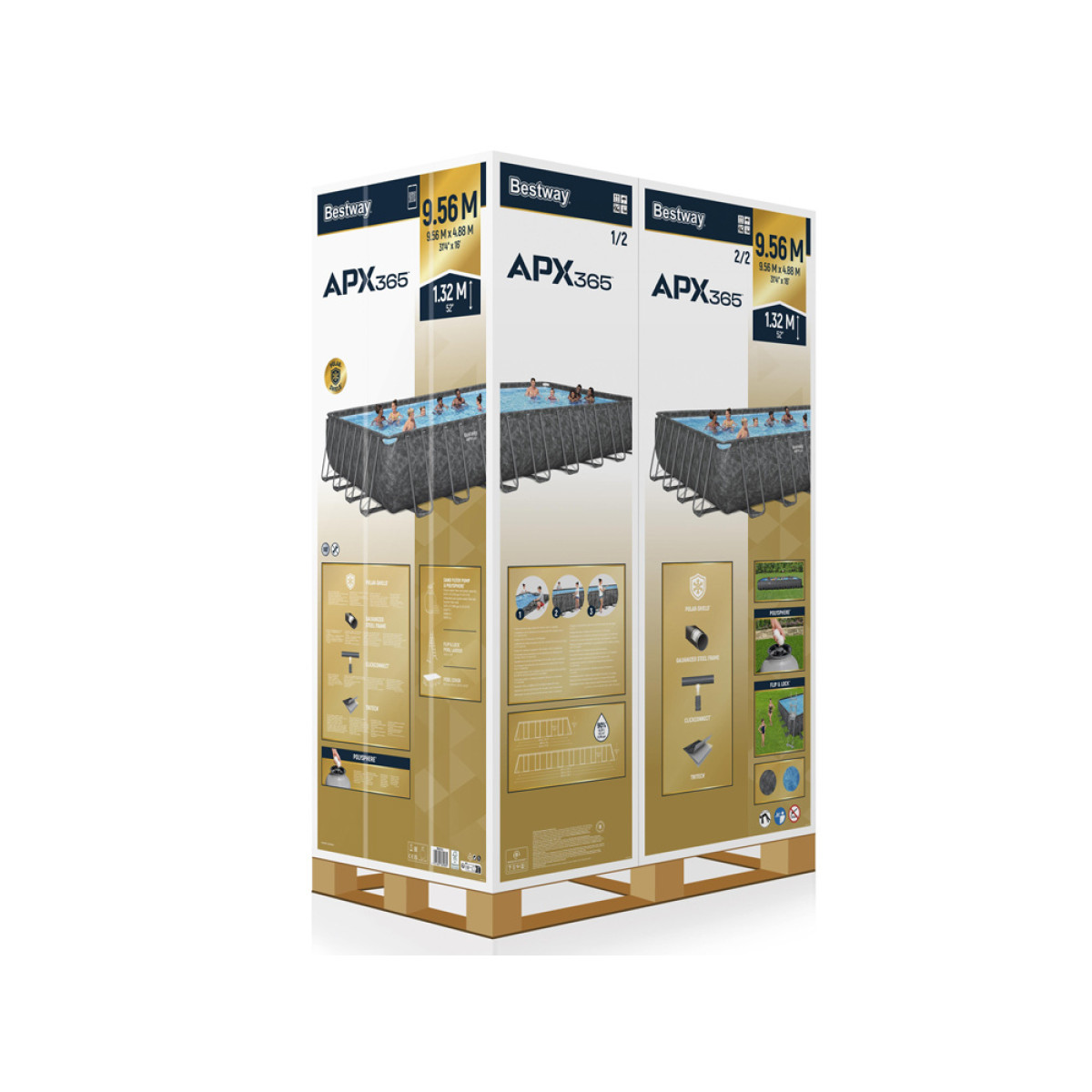 APX 365™ seeria on loodud maksimaalse ilmastikukindluse tagamiseks. Basseini raam on valmistatud 100% terasest, mis on kaetud tsingikihiga, et kaitsta korrosiooni ja roostetamise eest. Lisaks võimaldab ClickConnect™ süsteem kiiret ja intuitiivset paigaldust ilma tööriistadeta, samas kui spetsiaalsed ühendused takistavad metalli otsest kontakti, mis suurendab konstruktsiooni vastupidavust veelgi.
