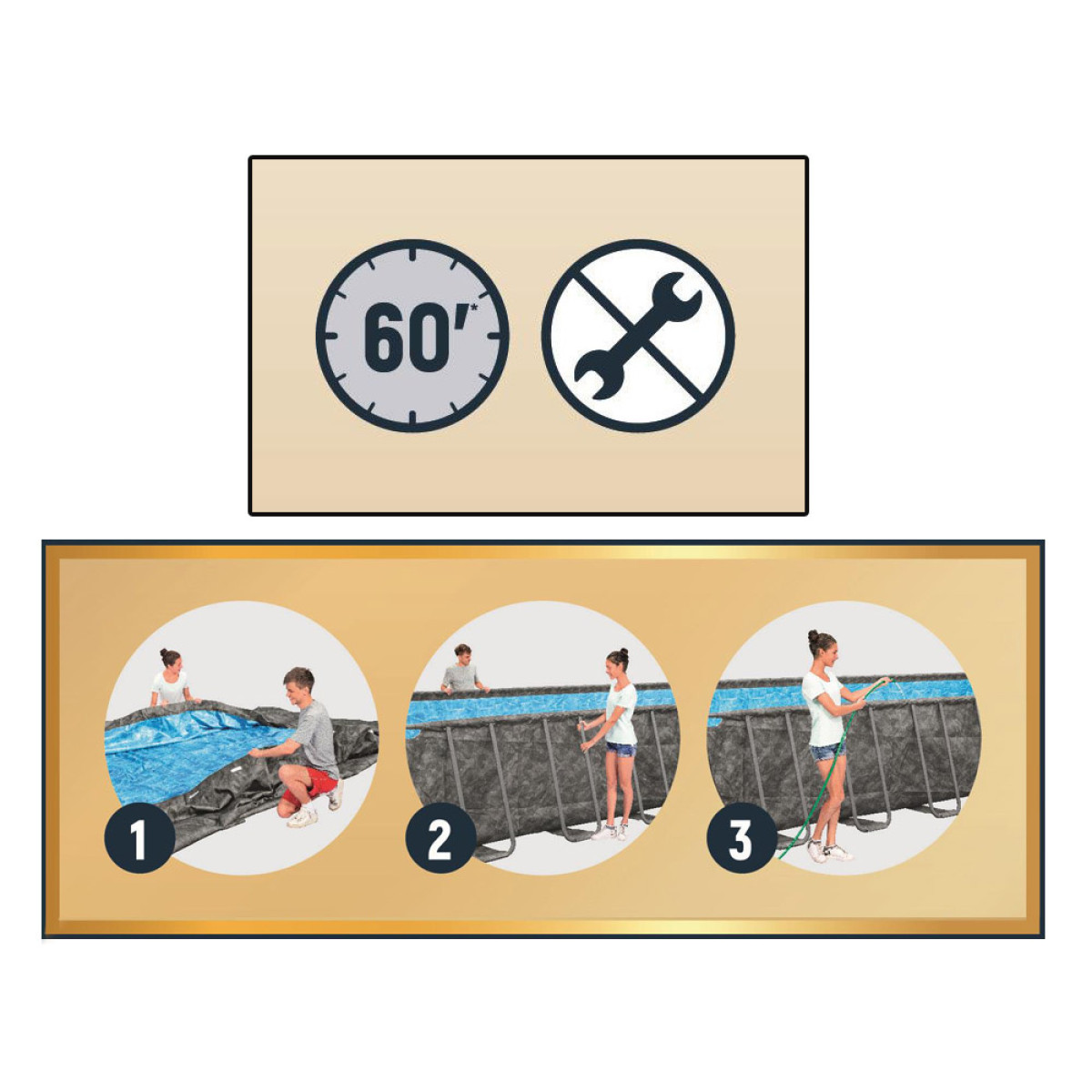 Basseini karkass on valmistatud täielikult tsingitud terasest rooste ja kahjustuste vältimiseks. ClickConnect™ süsteem teeb basseini paigaldamise ülilihtsaks, ilma tööriistu kasutamata. Lisaks kaitsevad ühendused karkassi korrosiooni eest.