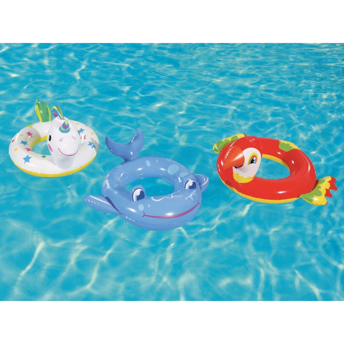 Värvilised, täispuhutavad loomakujulised ujumisrõngad on Bestway pakkumine.