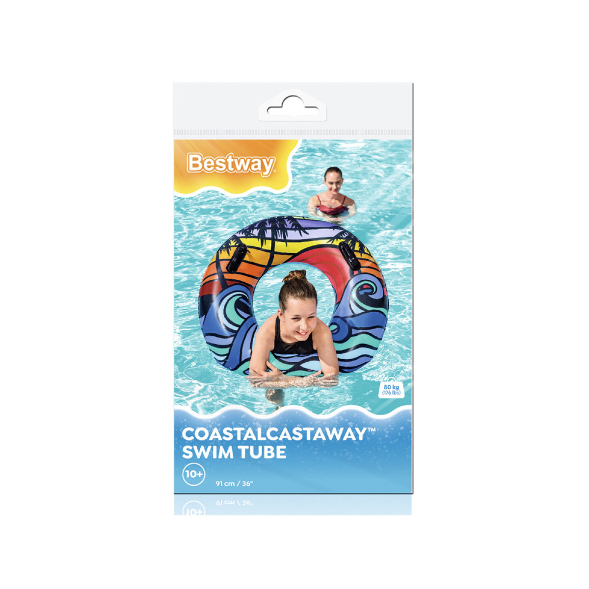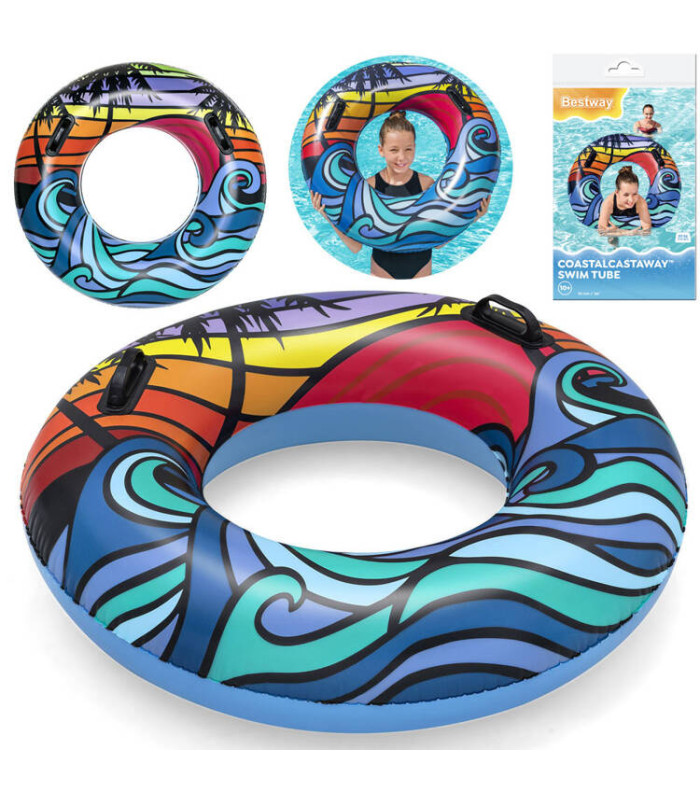 Bestway täispuhutav ujumisrõngas 91 cm on Bestway pakkumine lähenevaks suvehooajaks, et hoida end veepinnal sellel suvehooajal. Rõngas on mõeldud lastele alates 10. eluaastast. Ilus disain ja erksad värvid köidavad iga veemängude armastaja tähelepanu. Rõngal on kaks vastupidavat käepidet, mis hõlbustavad sisse- ja väljumist inimestele, kes tunnevad end vees ebakindlalt. Rõngas on valmistatud vastupidavast PVC-materjalist, mis on vastupidav kahjustustele ja päikesekiirgusele.