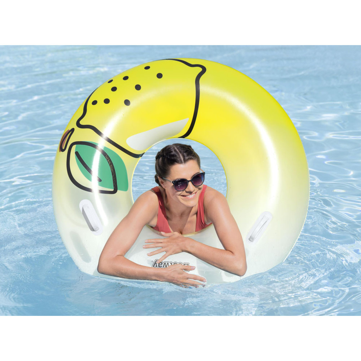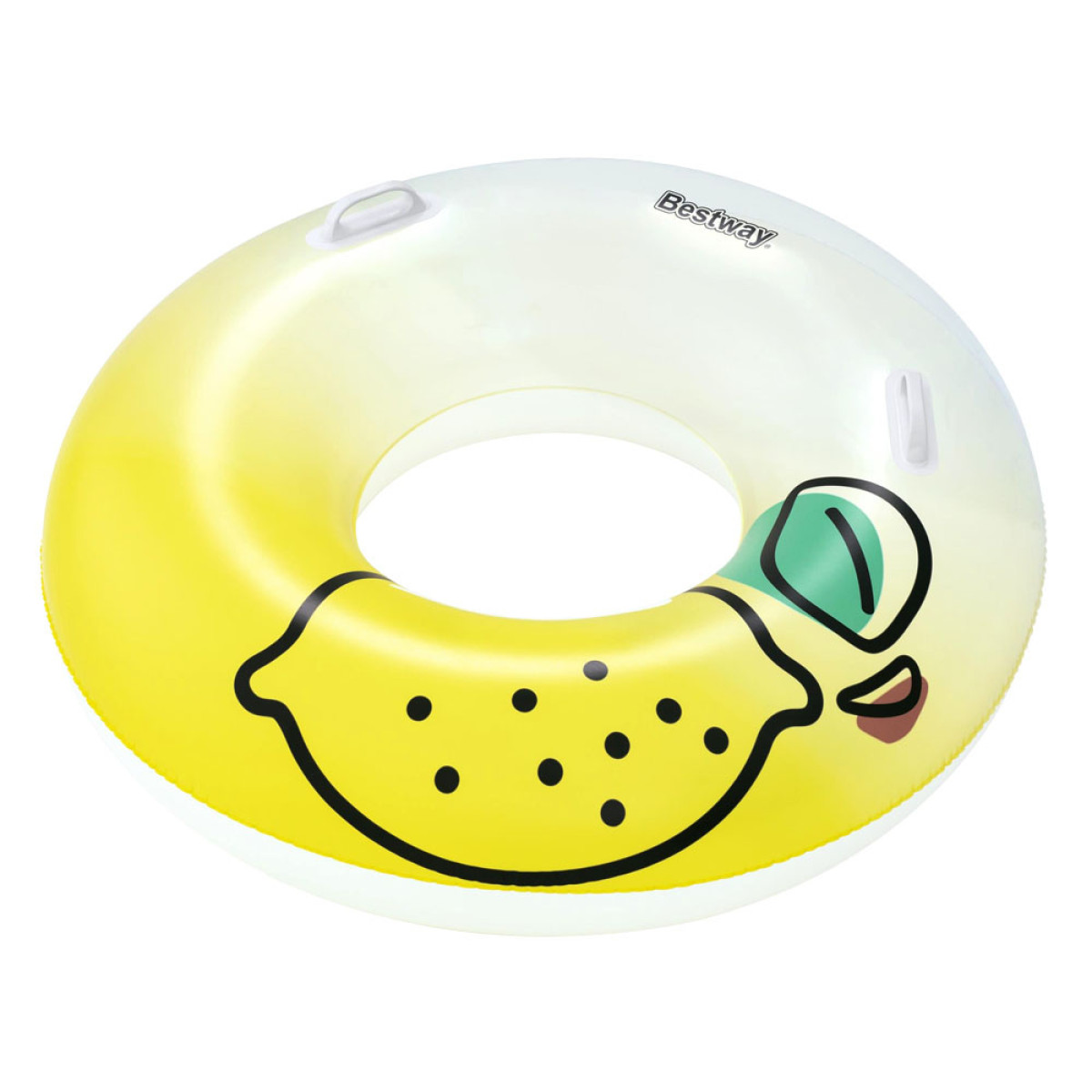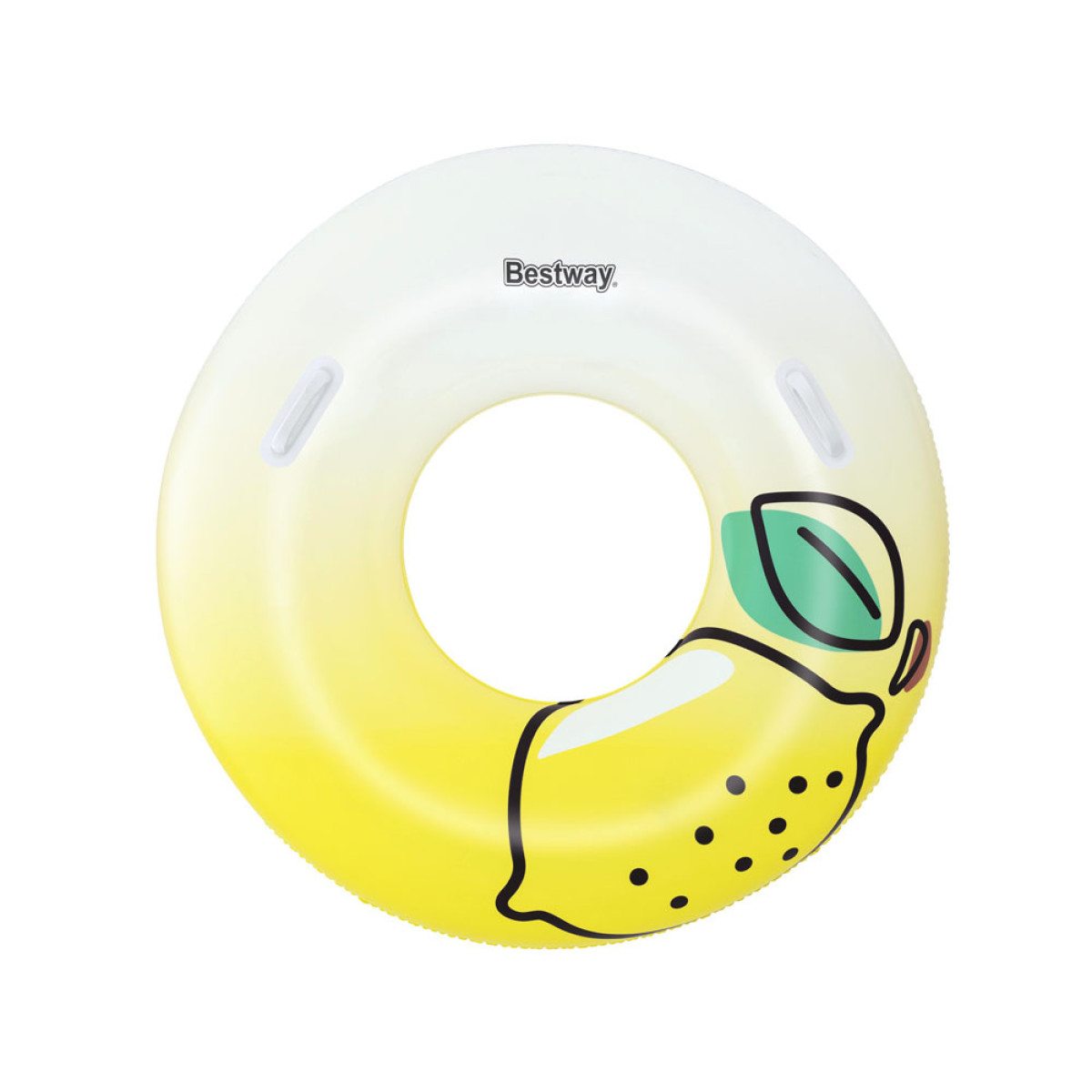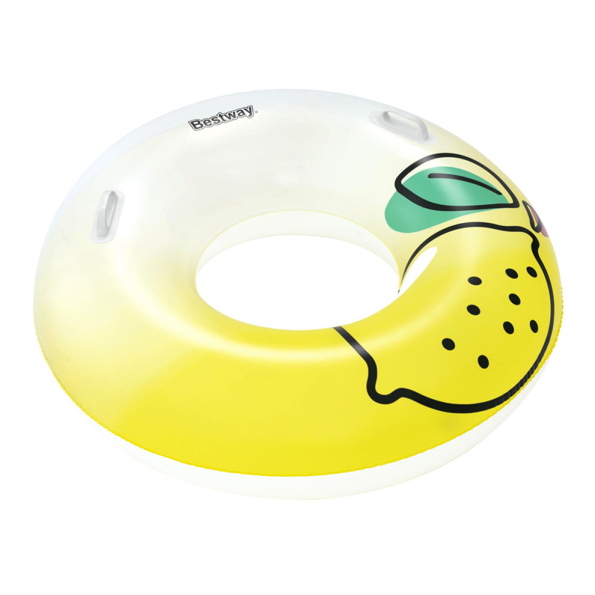 Suurepärane valik kuumadeks suvepäevadeks - sobib ideaalselt nii rannas kui basseinis kasutamiseks. Käepidemed tagavad kasutusmugavuse, hele sidrunigraafika köidab pilku ja loob suvise meeleolu. Olenemata sellest, kas lõõgastud rahulikus vees või osaled veemängudes, on see rõngas sinu usaldusväärne kaaslane.