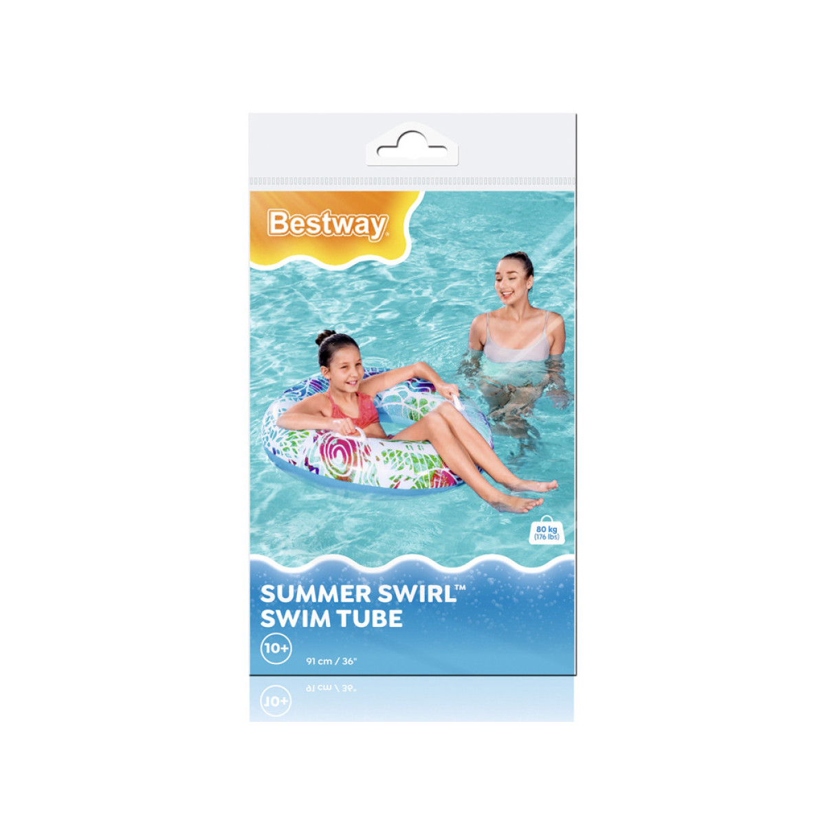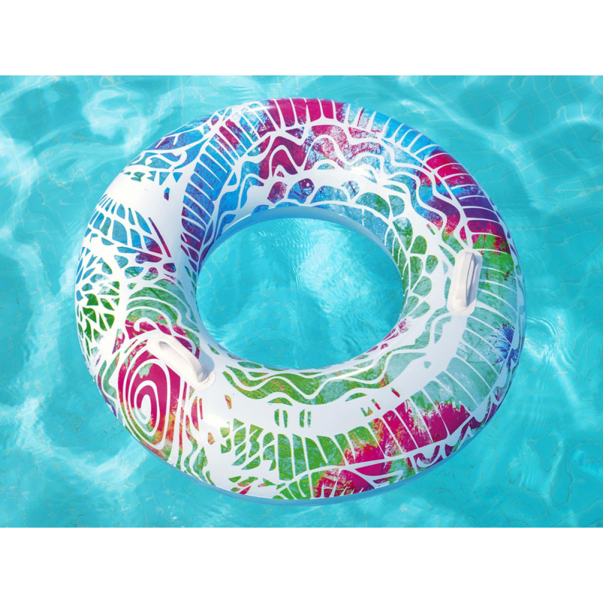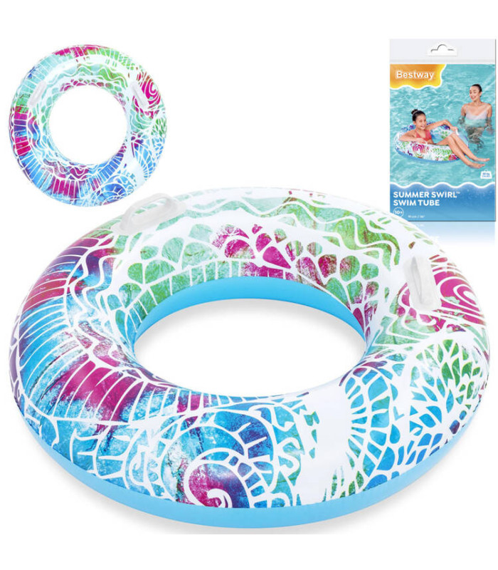 Selle Bestway värvikireva suure ujumisrõngaga saab nautida suviseid veeseiklusi, sobib lastele alates 10. eluaastast. 91 cm läbimõõduga rõngas on varustatud kahe käepidemega, mis pakuvad turvatunnet neile, kes ei tunne end vees kindlalt. Rõngas on valmistatud tugevast PVC materjalist. Turvaventiil tagab mugava kasutamise suvepuhkuse ajal. Ujumisrõnga fantastiline suvine värvilisus kutsub veekogudes mängima.