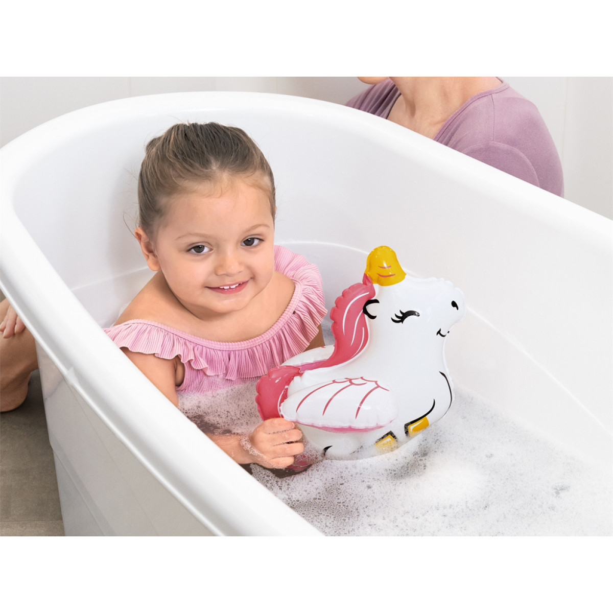 Täispuhutav ükssarvik firmalt Bestway on suurepärane kaaslane suplemisel, puhkuse ajal järve ääres või basseinis. Selle kuju ja värvilahendus aitavad lapsel tutvuda erinevate loomadega. Väike suurus ja kiire täispuhumine võimaldavad selle kõikjale kaasa võtta. Mänguasi on lastele lihtne haarata, muutes veealuse mängu tõeliseks elamuseks. Tänu oma värvilisusele köidab see iga lapse tähelepanu. Mänguasi on valmistatud vastupidavast vinüülist.