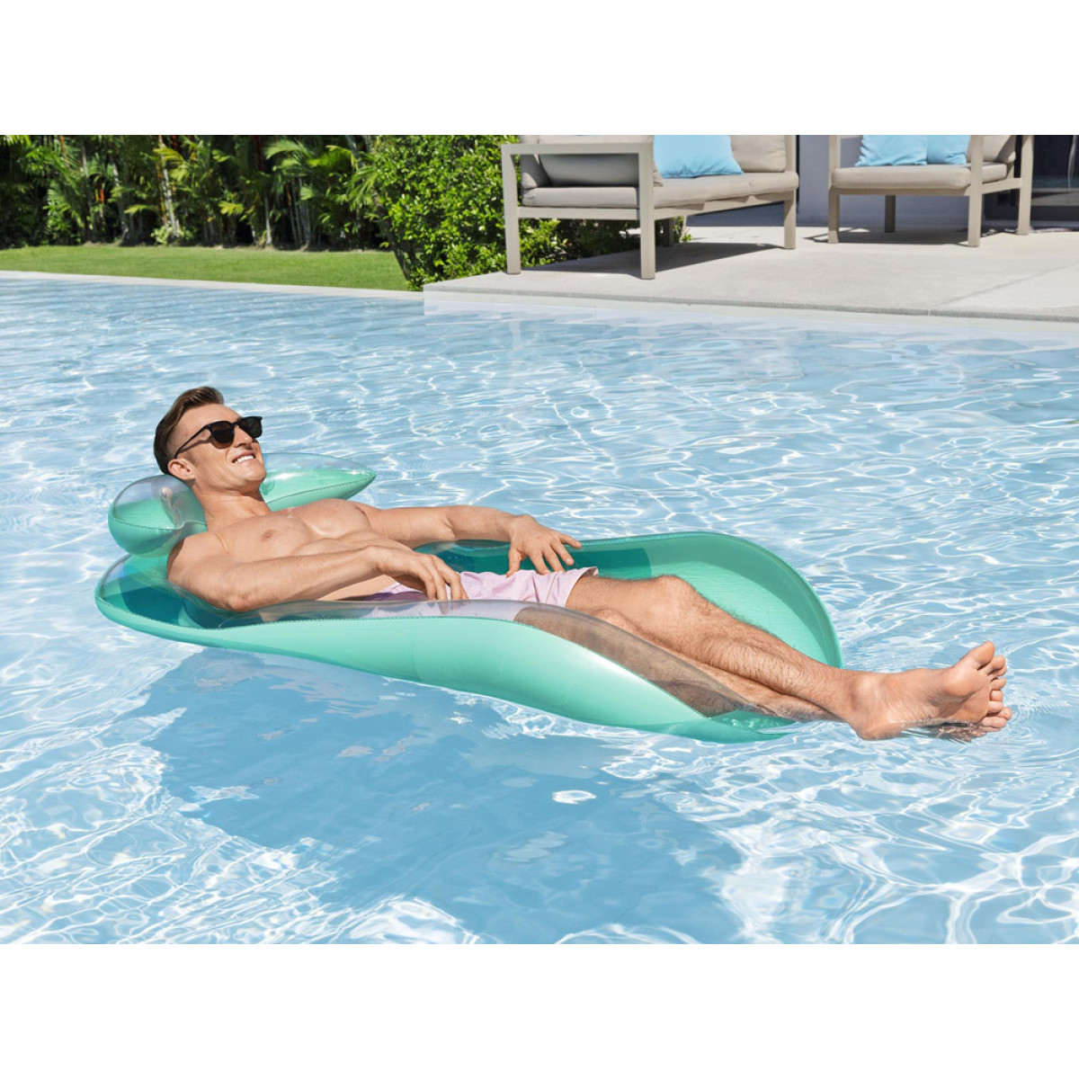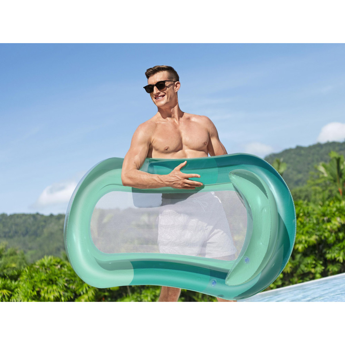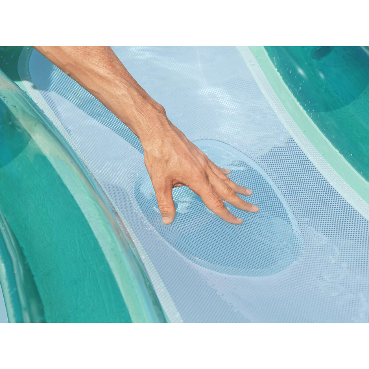 Päikeseline päev, kerge tuul ja värskendav vesi loovad täiusliku hetke puhkuseks. Sellel ujumismadratsil on täispuhutavad küljed ja pehme võrkpõhi, mis hoiavad keha osaliselt vees. Nii püsib olemine mõnusalt jahe ka kuuma ilmaga.
