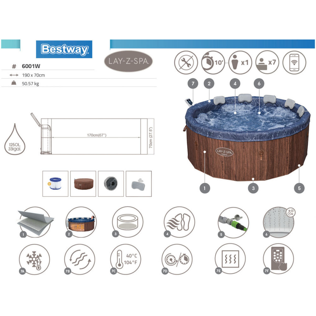 Seda SPA-d saab juhtida mobiilseadme kaudu Bestway SmartSpa™ rakenduse abil. See uuendus muudab selle mullivanni üheks kõige mugavamaks SPA-ks turul. Rakendus võimaldab seadistada ideaalse SPA temperatuuri, aktiveerida Energia Säästja Taimeri, käivitada vee filtri ja juhtida massaažisüsteemi - kõik käeulatuses.
