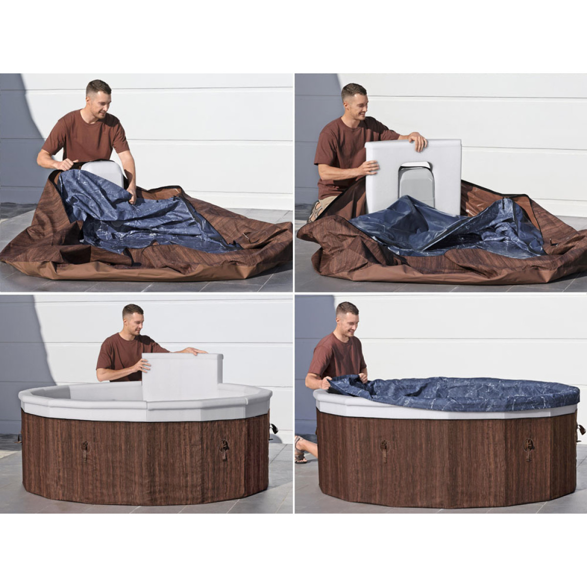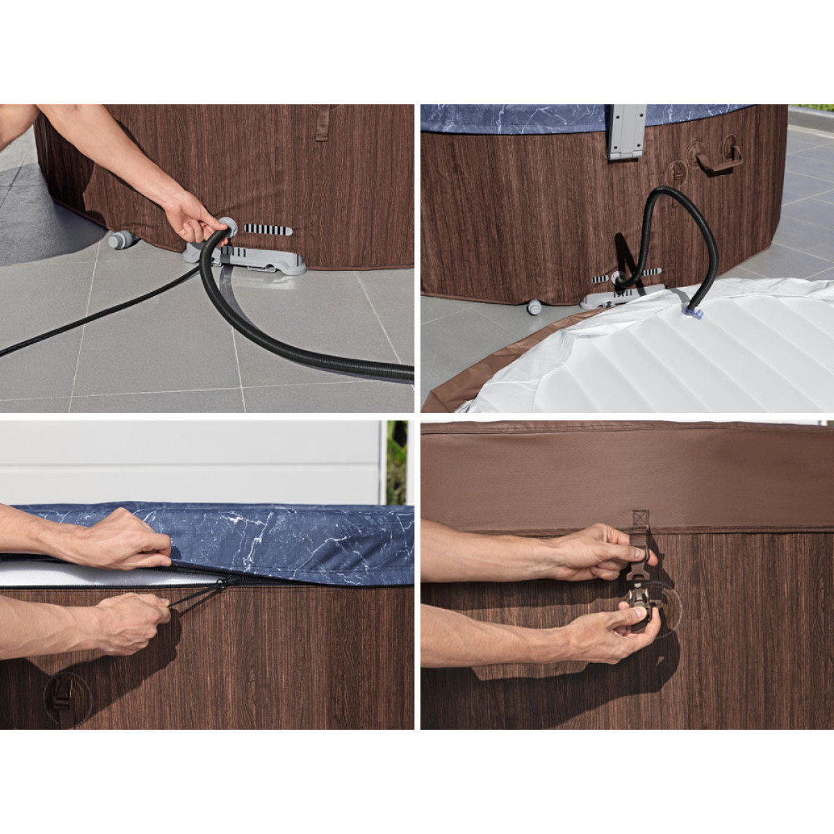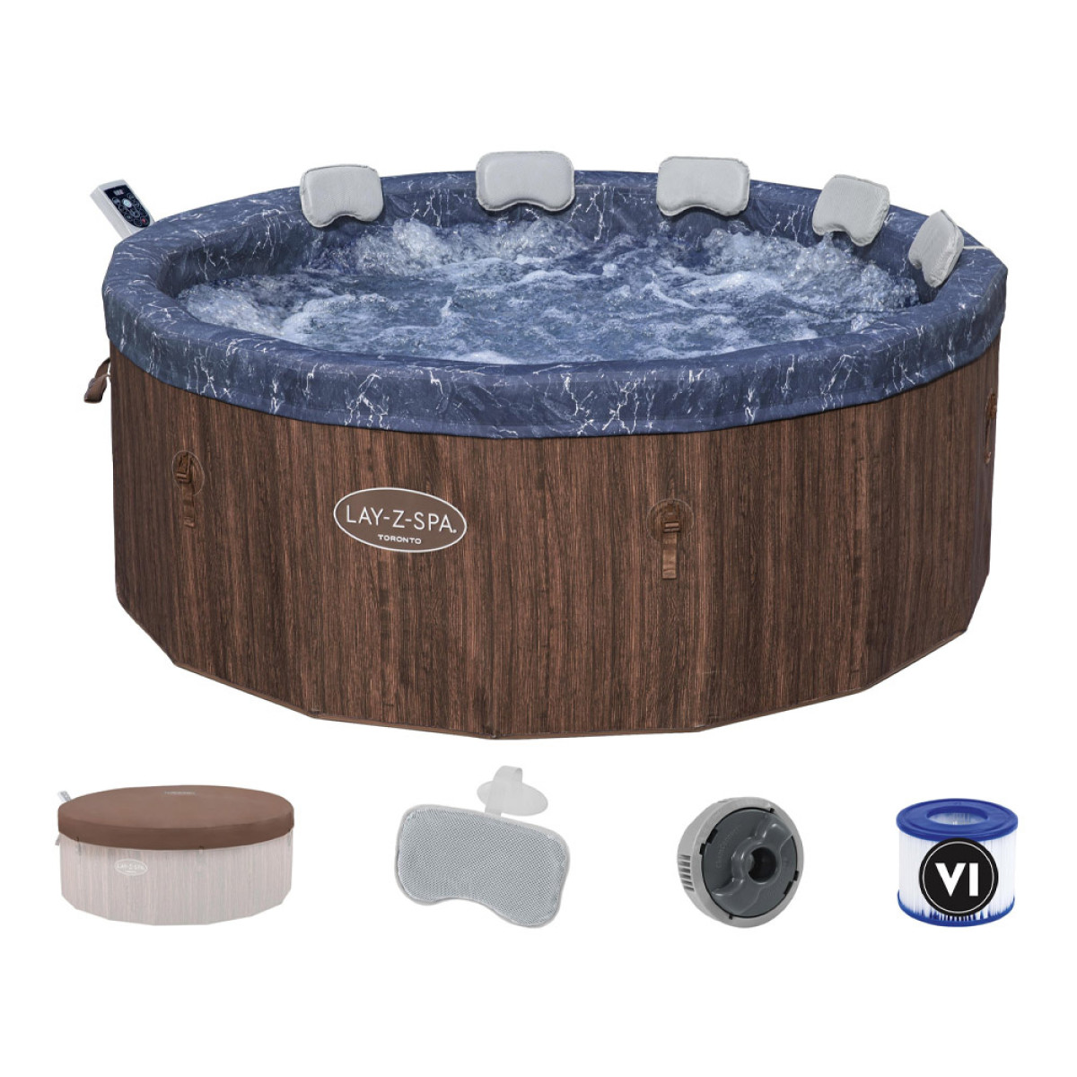 Toronto mudel on stiilse välimuse ja kasutusmugavuse ideaalne kombinatsioon. Välimine puidujäljendiga trükk ja sinine marmorist interjöör moodustavad suurepärase koosluse, mis sobib ideaalselt koduaeda. 5 mugavat patja suurendavad SPA kasutusmugavust, pakkudes muretut puhkust soojas vees.