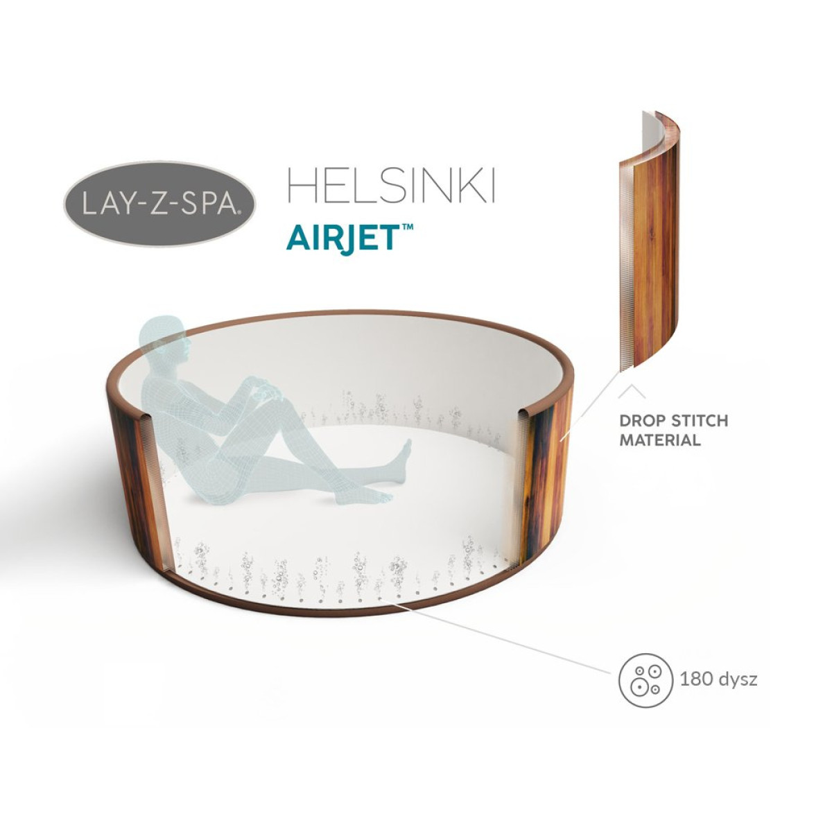 Lay-Z-Spa AirJet Helsinki sobib kasutamiseks kodus, terrassil või aias, pakkudes suurepärast stabiilsust ja mugavust. Vali Lay-Z-Spa Helsinki AirJet lõõgastuseks, mugavuseks ja mitmekülgsuseks taskukohase hinnaga.